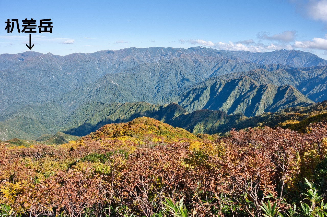 背後を振り返ると、昨日は全く見えていなかった朳差岳の姿がありました。これは間違いなく名山の風格。