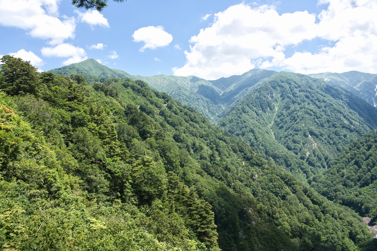 水をかぶって多少は涼しくなったところで、行動を再開します。頼母木小屋からは、大きく登りに転じます。