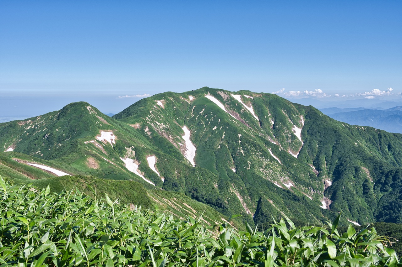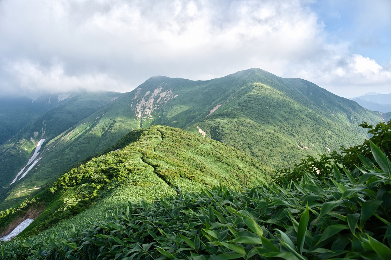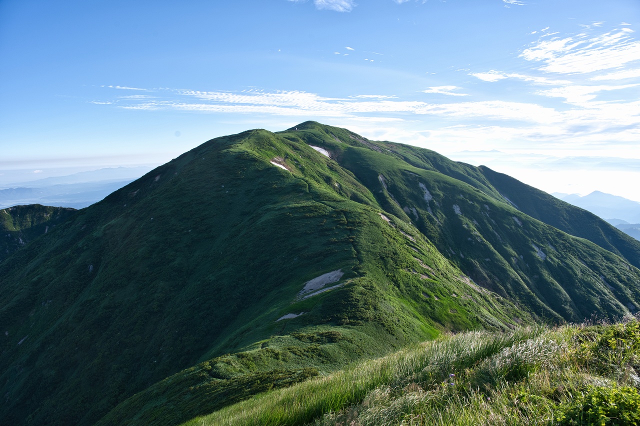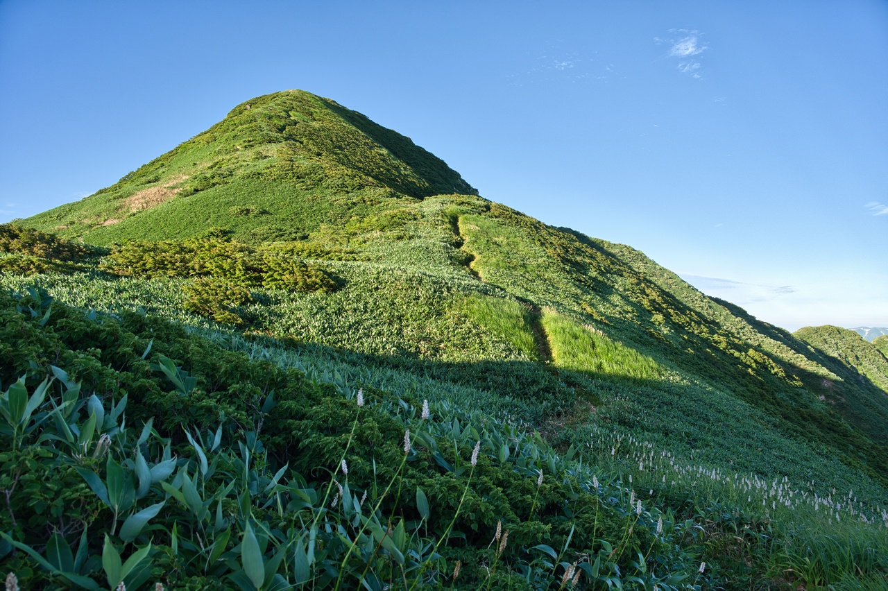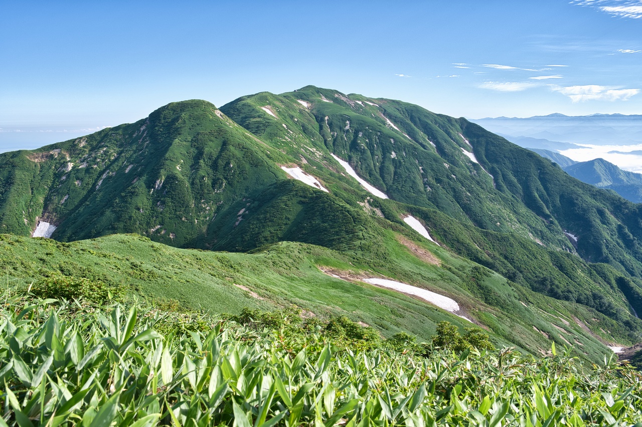 福島県、山形県および新潟県の3県にまたがる飯豊連峰の北端に位置している山です。標高1,600メートル少々でしかない山ですが、豪雪地帯にあるため森林限界高度は低く、視界が大きく開けた稜線が連なっています。雪解け直後の初夏の季節になると、稜線上に多種多様な高山植物が一斉に花を咲かせます。