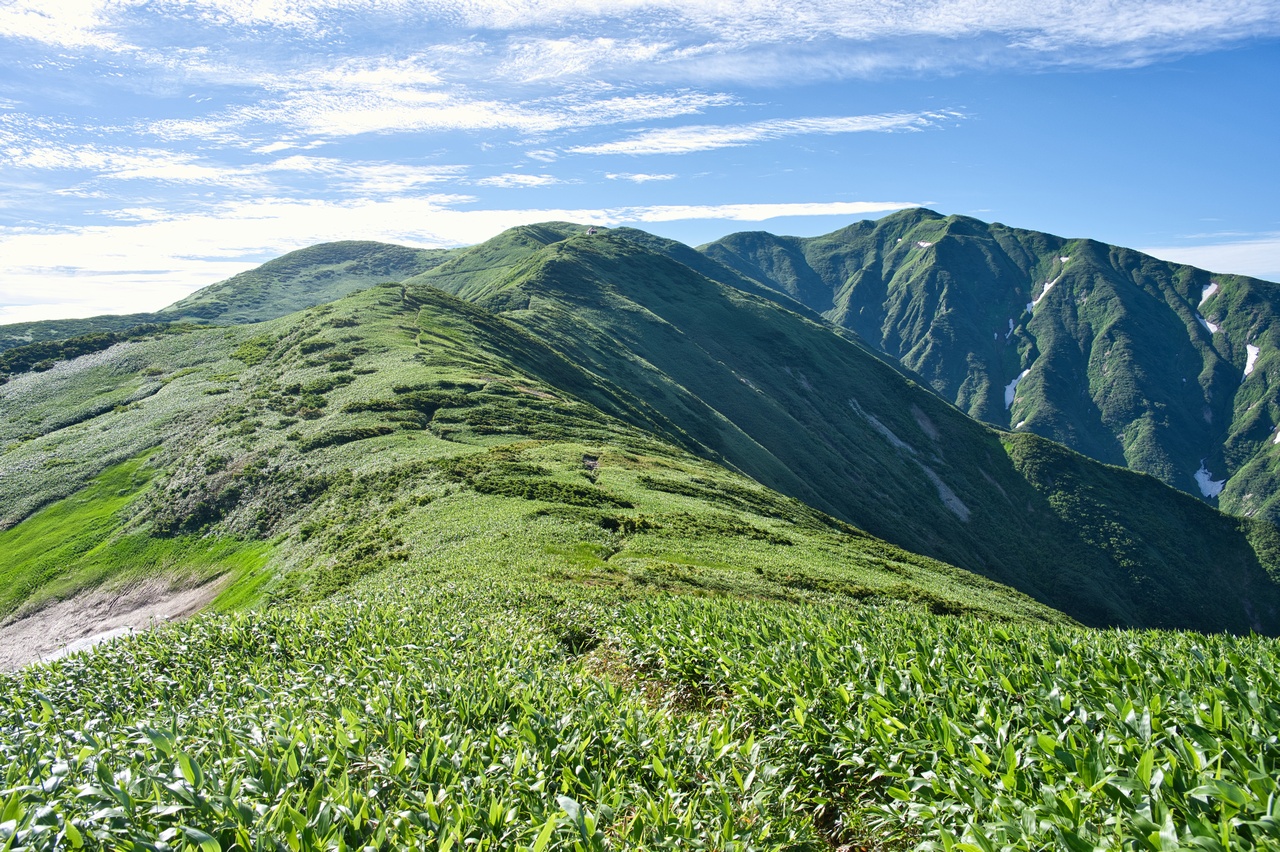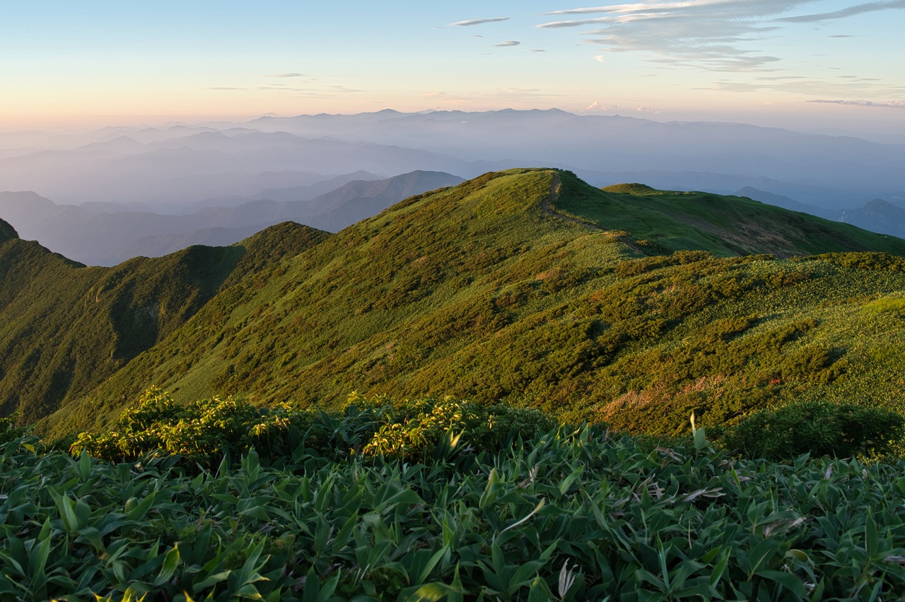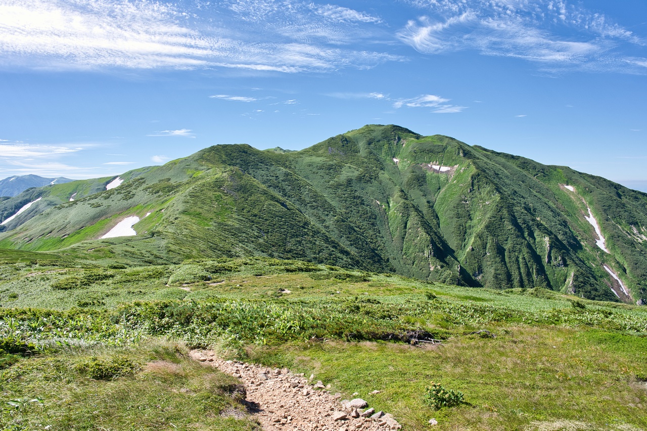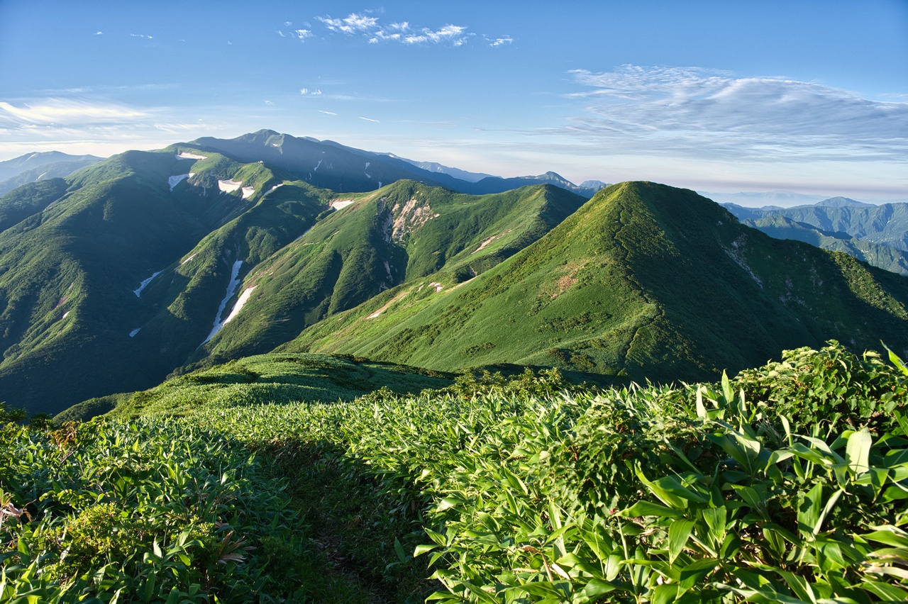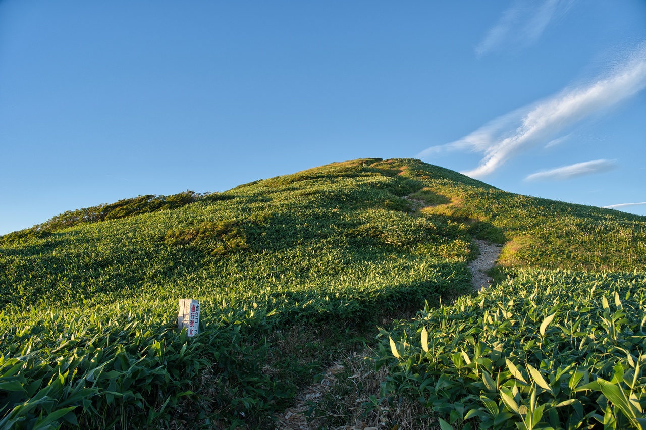 福島県、山形県および新潟県の3県にまたがる飯豊連峰の北端に位置している山です。標高1,600メートル少々でしかない山ですが、豪雪地帯にあるため森林限界高度は低く、視界が大きく開けた稜線が連なっています。雪解け直後の初夏の季節になると、稜線上に多種多様な高山植物が一斉に花を咲かせます。
