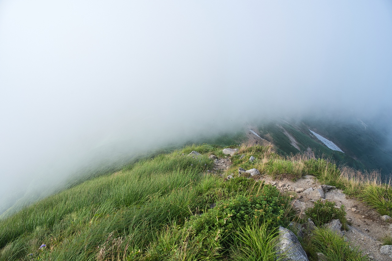 明日歩く予定の頼母木山方面は、完全に雲の中に没しています。こちらの展望については、明日に期待しておきましょう。
