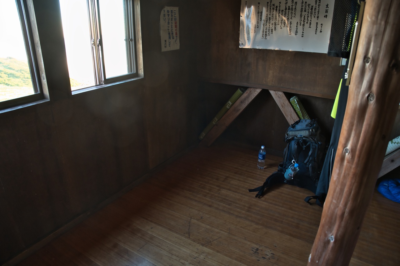 先客は3人しかおらず、そのうちの一人は登山道の整備をしているという地元の方でした。今夜は悠々とスペースを使えそうです。