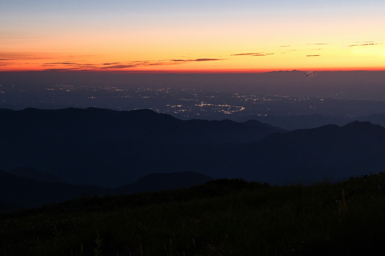 水場から戻ってくると、周囲はすっかりと暗くなっており、ぼんやりと夜景が見えていました。