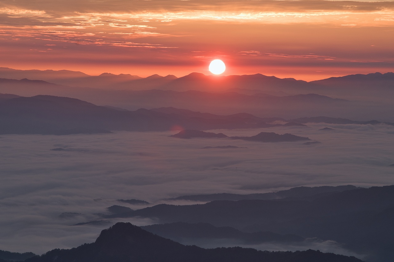 山の上で宿泊したからには、朝一番にやるべきことは一つしかありません。それは山頂からのご来光を眺めることです。