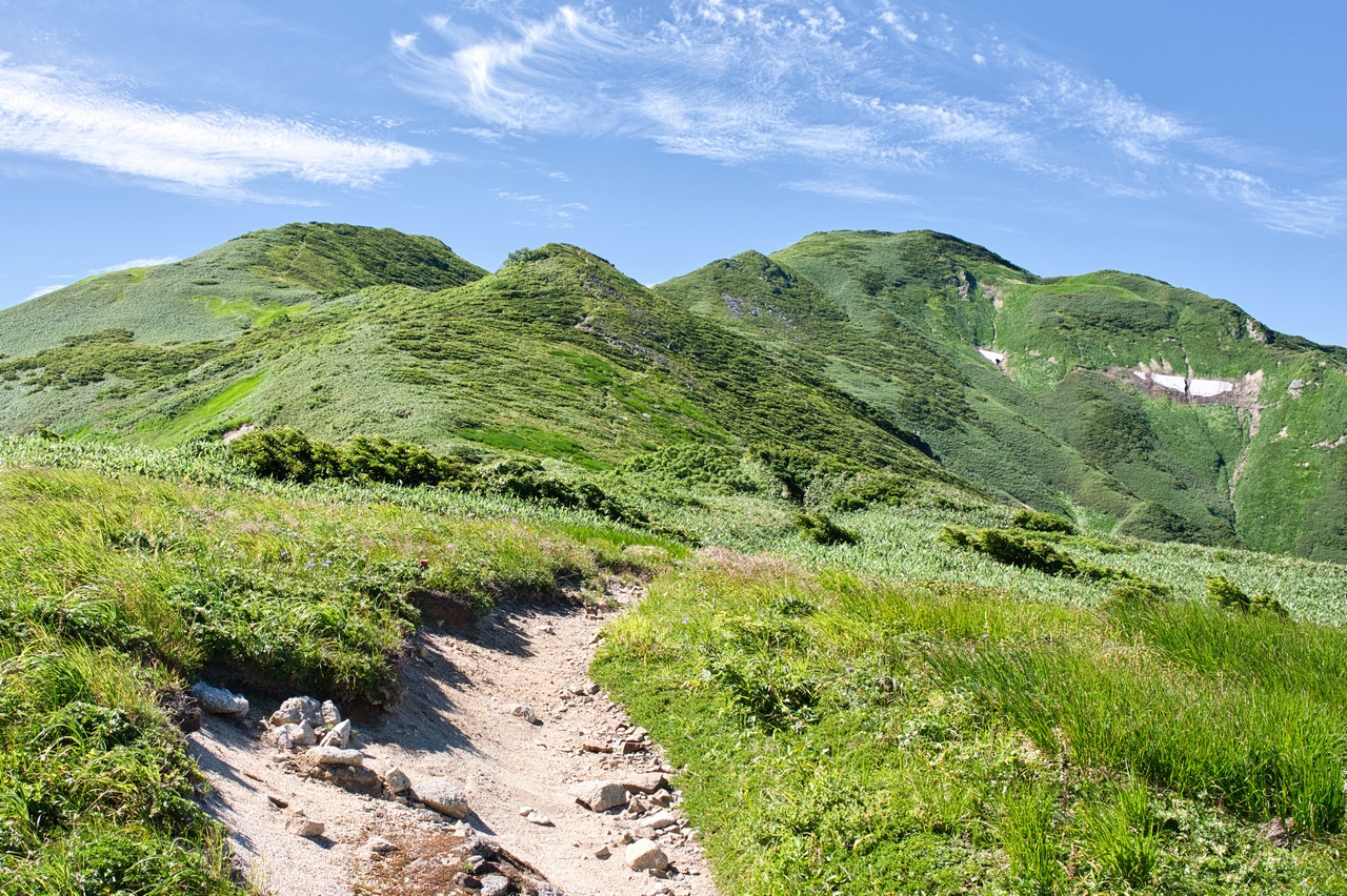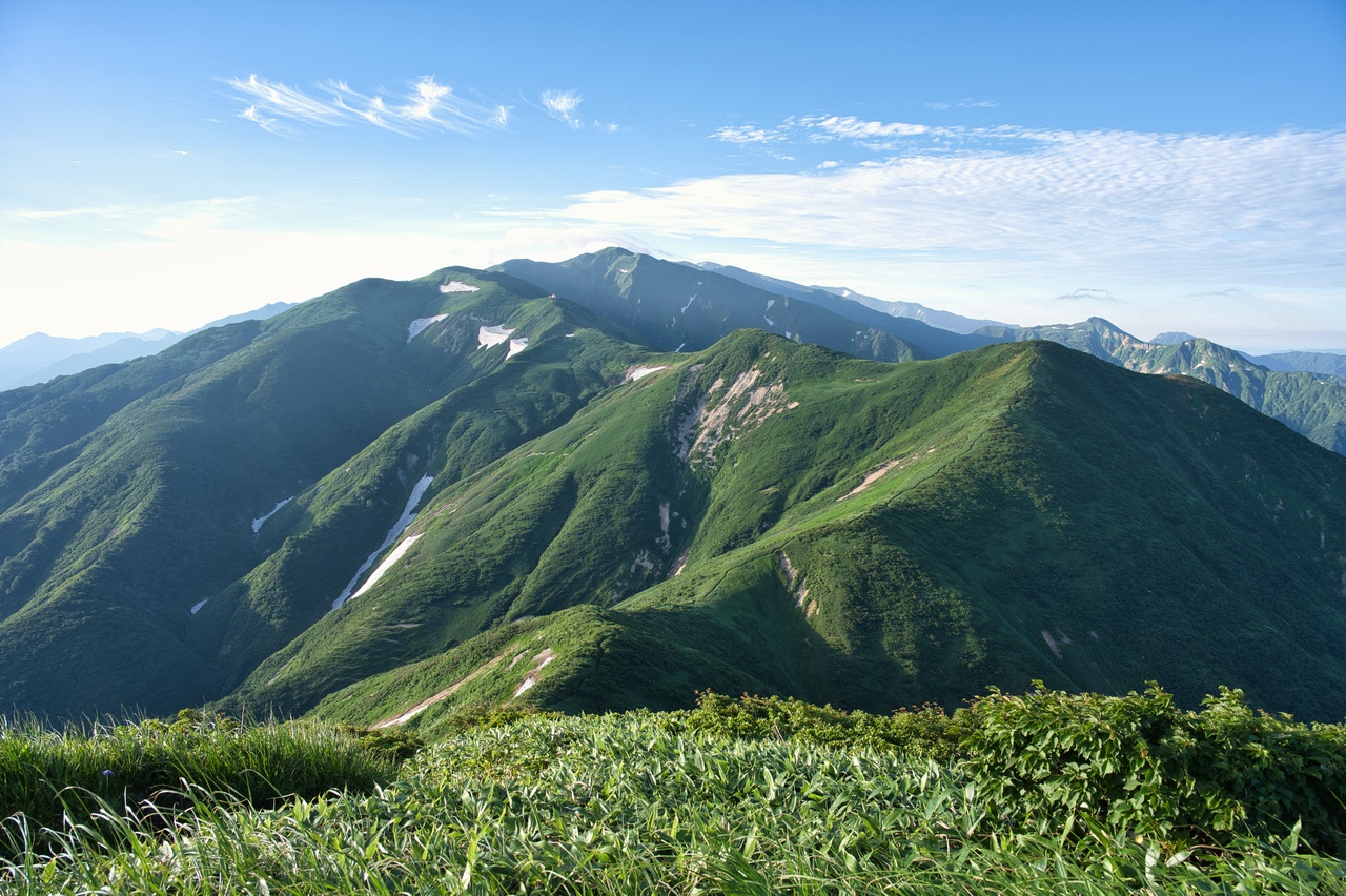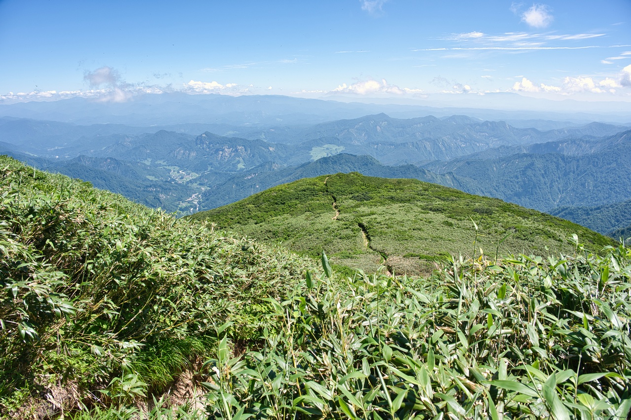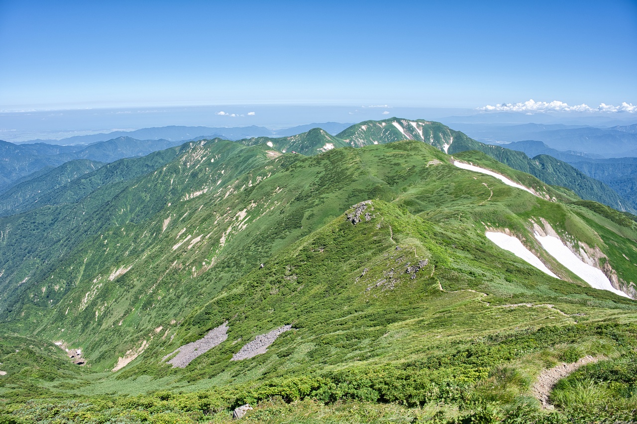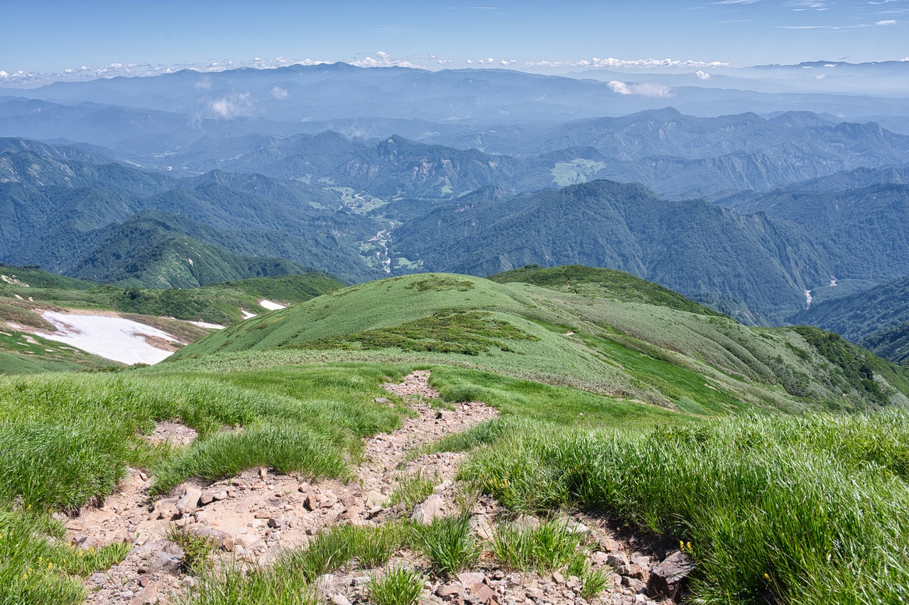 飯豊連峰の山々は基本的に、それほど標高が高くはないのに稜線上は森林限界を越えているため、夏場は酷暑の世界と化します。出来れば真夏の時期は避けたかったのですが、結果として夏本番になってからの訪問となってしまいました。
