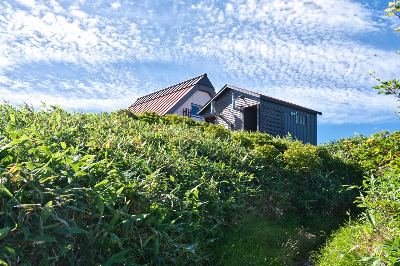 山頂のすぐ下の、お花畑の只中に建っています。これはまた、すばらしいロケーションにある小屋ではありませんか。