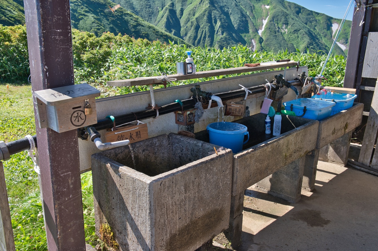 頼母木小屋には、飯豊のアルプスと称する水場があります。10月下旬の紅葉シーズンの終わりまで利用可能な、信頼がおける水源です。