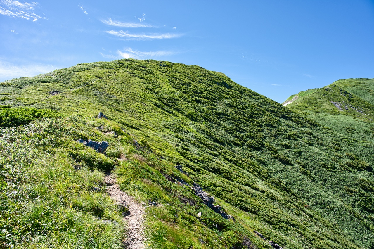 通行止めの影響もあって、明らかにベストではないタイミングでの訪問となってしまったので、いつかまたハクサンイチゲの季節に訪れたい山です。次回訪問があるとすれば、その時は奥胎内ヒュッテに前泊して早朝から登ります。日中に足の松尾根を登るのは、もうこりごりなので・・・