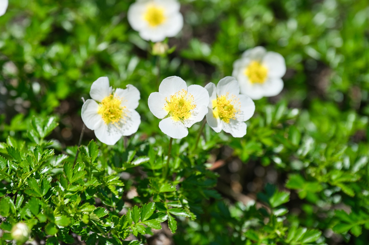 すでに綿毛化しているものありますが、まだまだ見頃です。ハクサンイチゲとチングルマは、どちらも白い花でぱっと見の印象は良く似ていますが、咲く時期で言うとハクサンイチゲの方が早くチングルマは後発です。