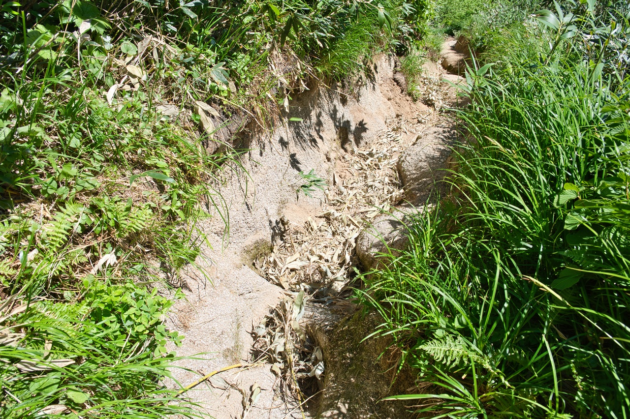 飯豊連峰は花崗岩が隆起してできた山で、こうして洗堀により露出している個所が所々にあります。場所によってはかなり大きくえぐれてしまっており、なかなかどうして歩きづらい道です。