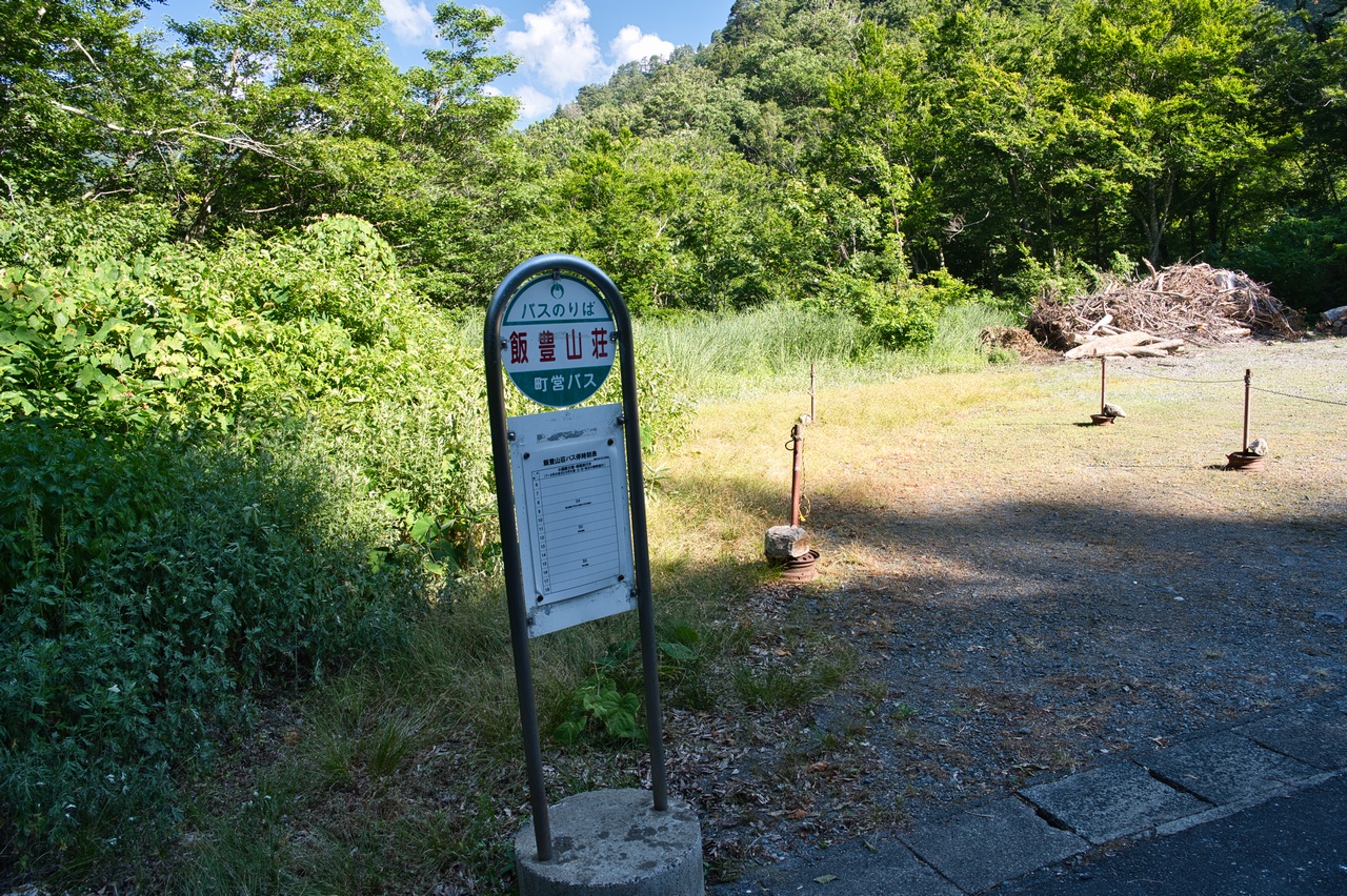 バス停は山荘の目の前ではなく、下山した地点から見て右手にあります。最終便は16時50分発なので、まだ時間にはだいぶ余裕があります。