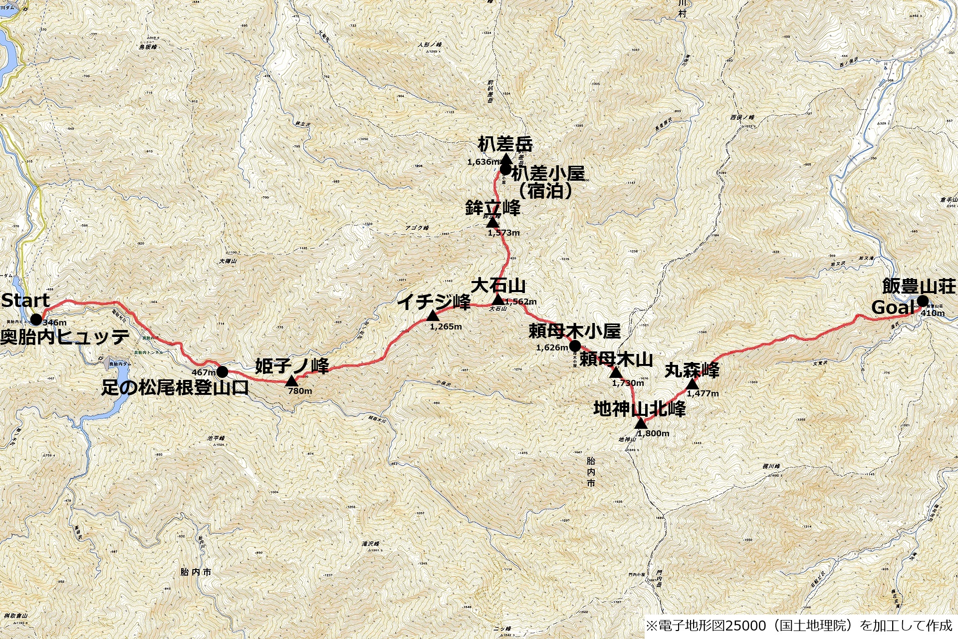 朳差岳に登りつつ、前回訪問時の軌跡と繋ぐ行程です。
