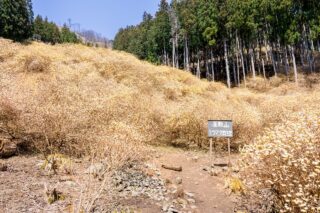 この先へもう少し進むと、地元の小学生が植樹を行っている学校林から登るルートがあります。そちらの方が多少は勾配が緩いのではないか期待して、先へ進みます。