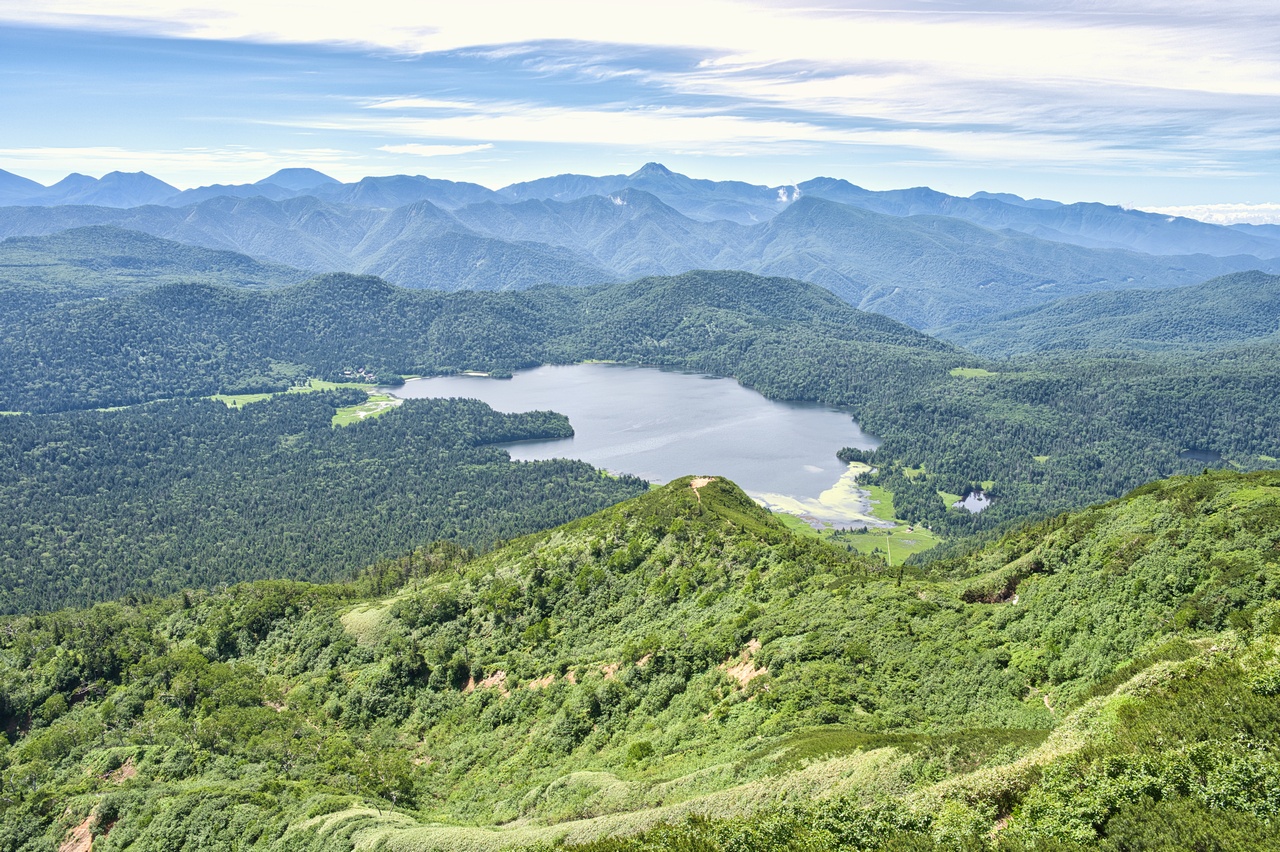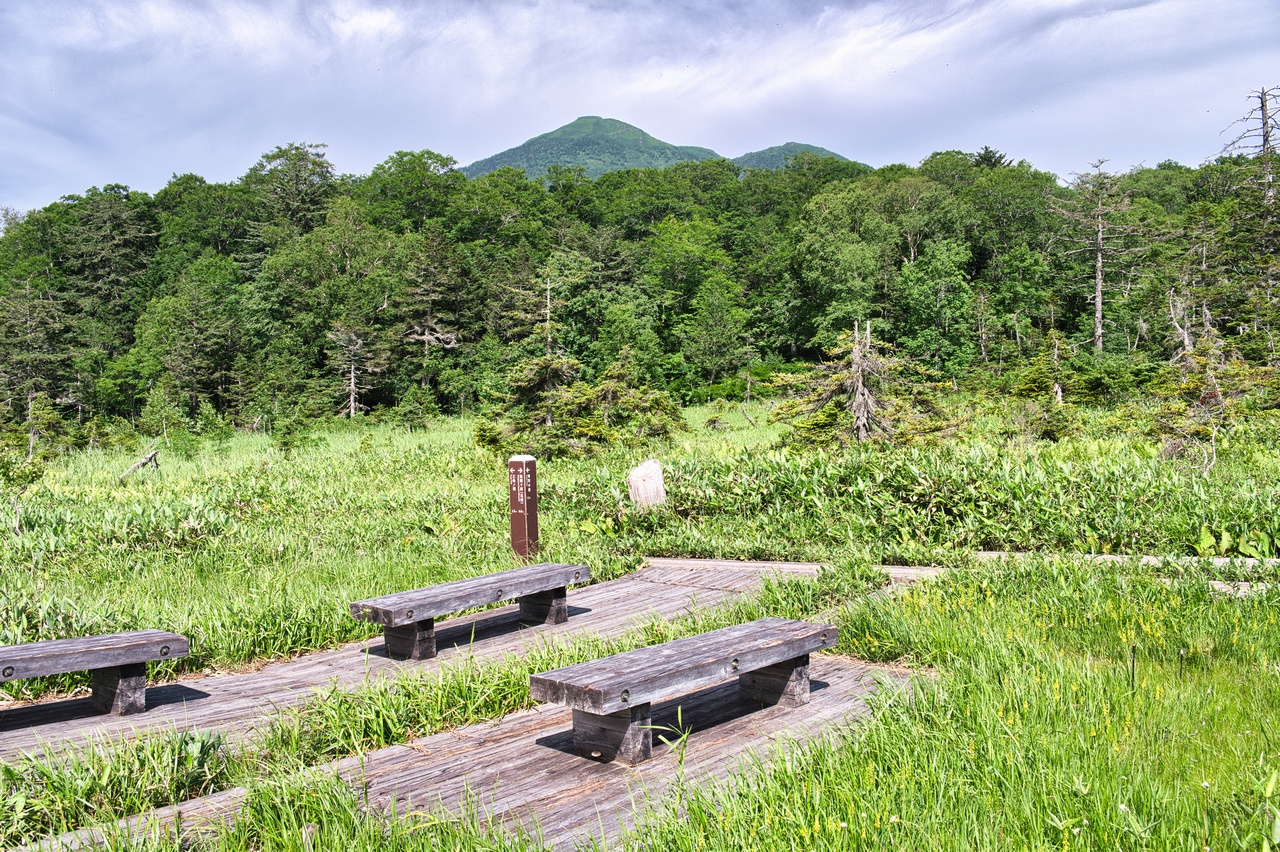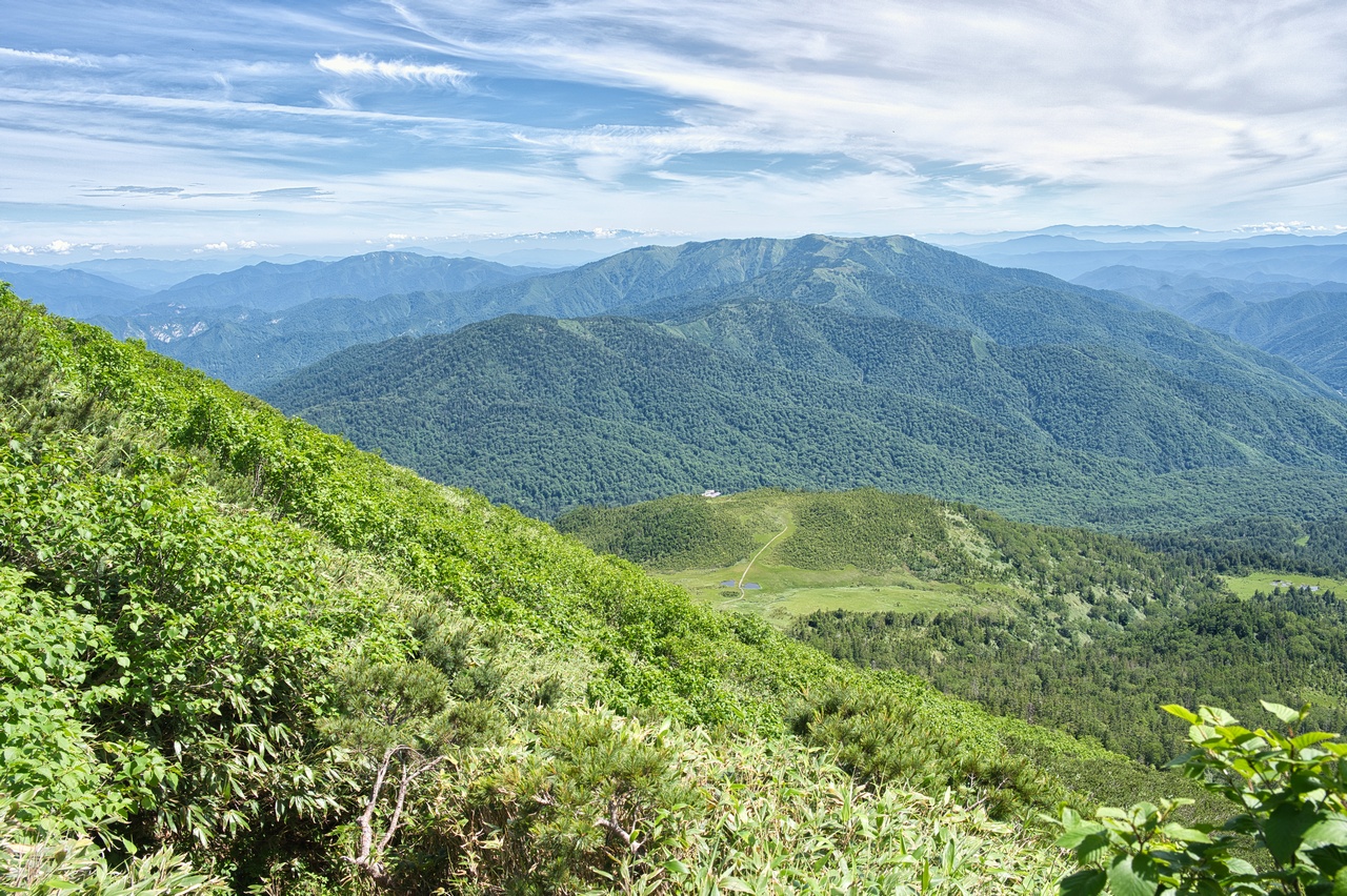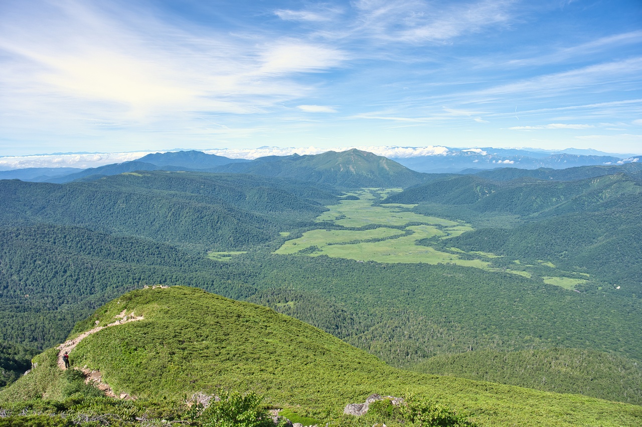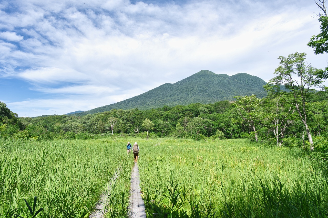 尾瀬ヶ原湿原のすぐ脇に立つ火山です。至仏山と共に尾瀬を象徴する山であり、同時に東北地方の最高峰でもあります。冬には豪雪地帯となることから森林限界高度は低く、山頂の一帯は展望の開けたハイマツ帯となっています。