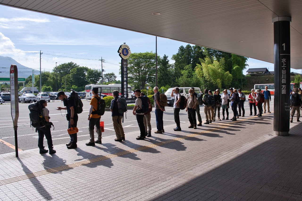 バス停に既に大行列が出来上がっていて面くらましたが、これは谷川岳ロープウェイ行きのバスを待っている人たちの行列でした。谷川岳は相も変わらずの大人気です。