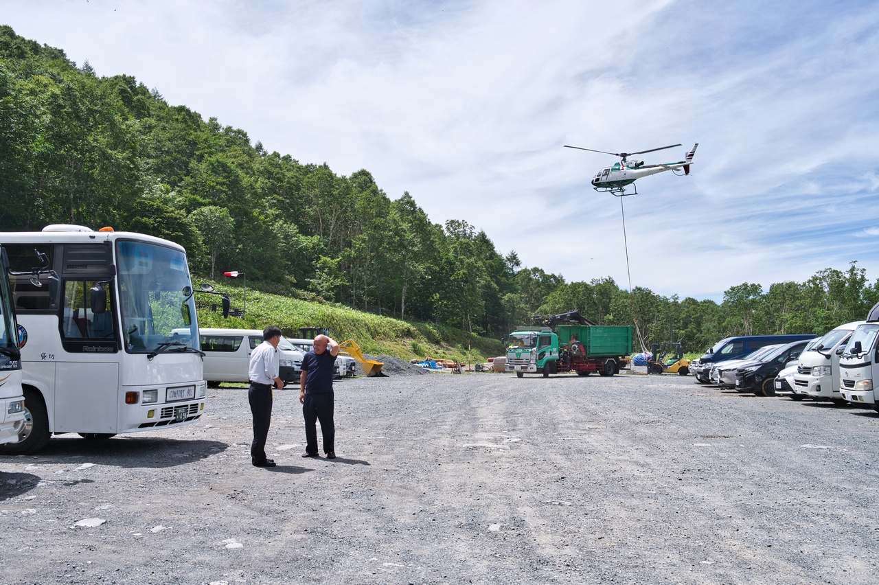 何やらヘリが荷下ろしをしている真っ最中で、けたたましい爆音と暴風をまき散らしていました。何か工事をしているのかな。