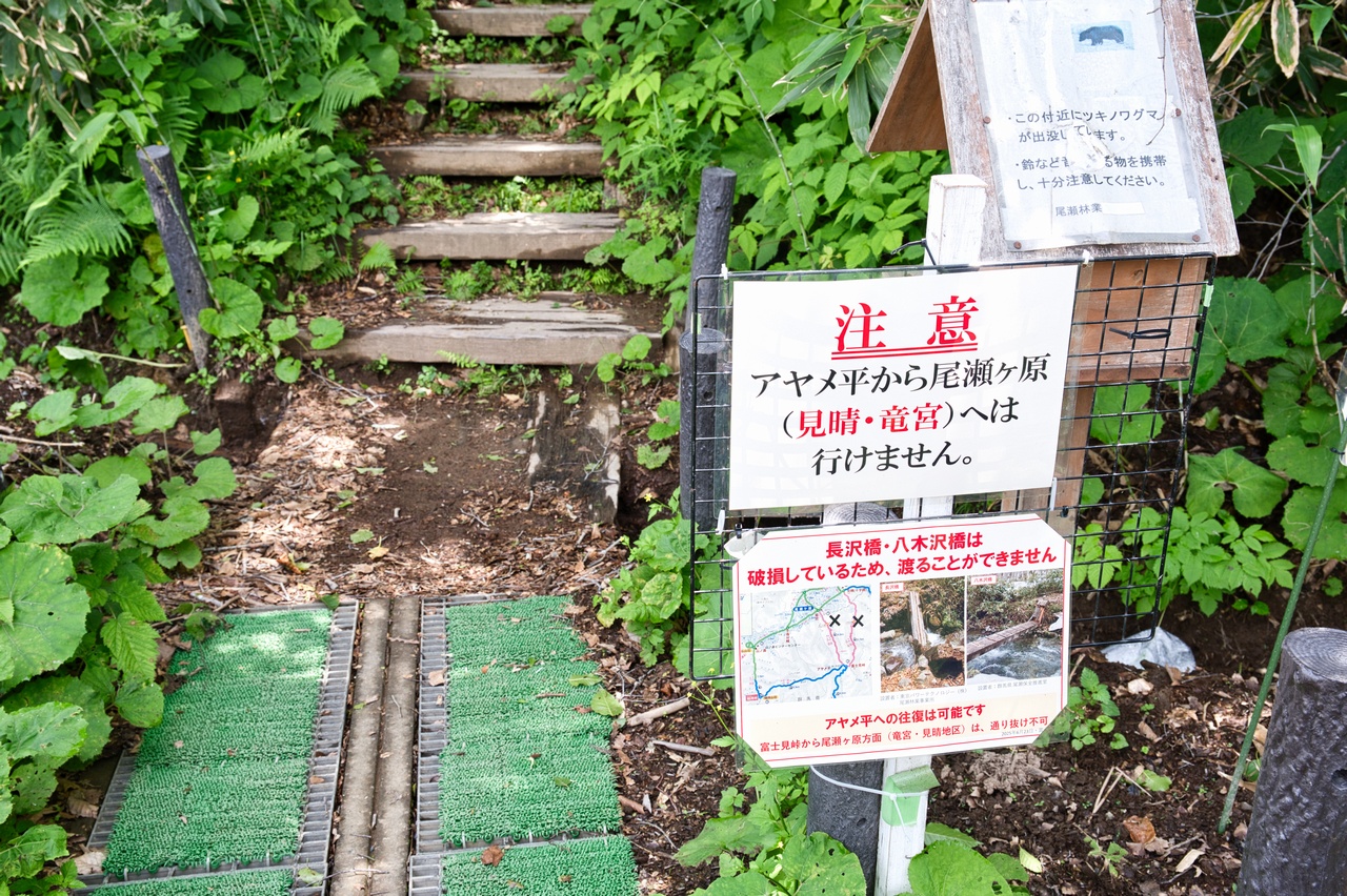 本日は当初の計画では、自身が1度も歩いたことがないアヤメ平を経由して竜宮に下るつもりでいました。しかし、橋が破損していてアヤメ平から竜宮方面へは降りられないとの案内が張り出されていました。