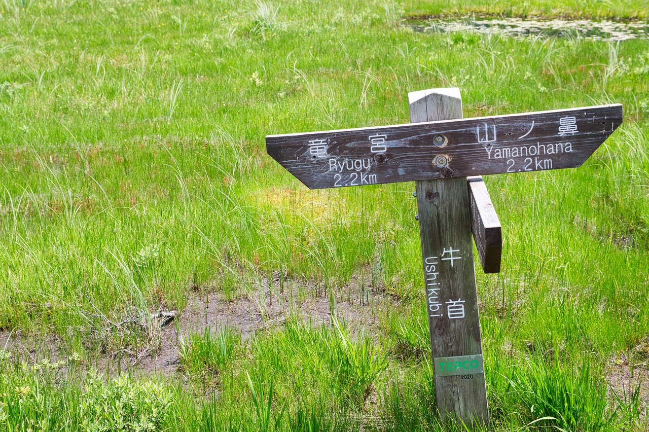 本日の宿泊予定地である見晴キャンプ場にまっすぐ向かうのであれば、このまま竜宮方面へ直進するのが最短距離です。なのですが、東電小屋方面にニッコウキスゲが咲いているとの事前情報を得ていたので、ここから進路を左に転じます。