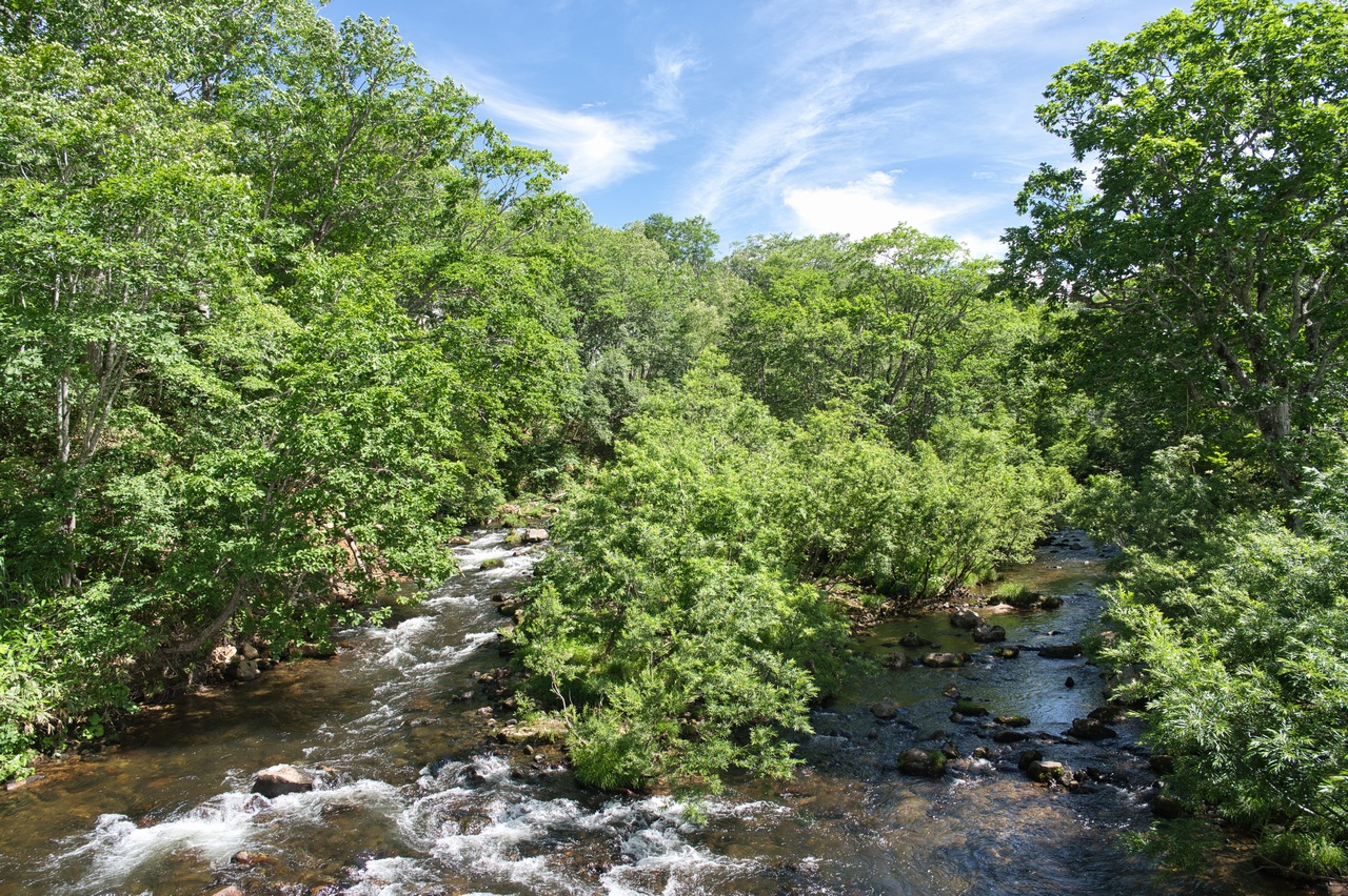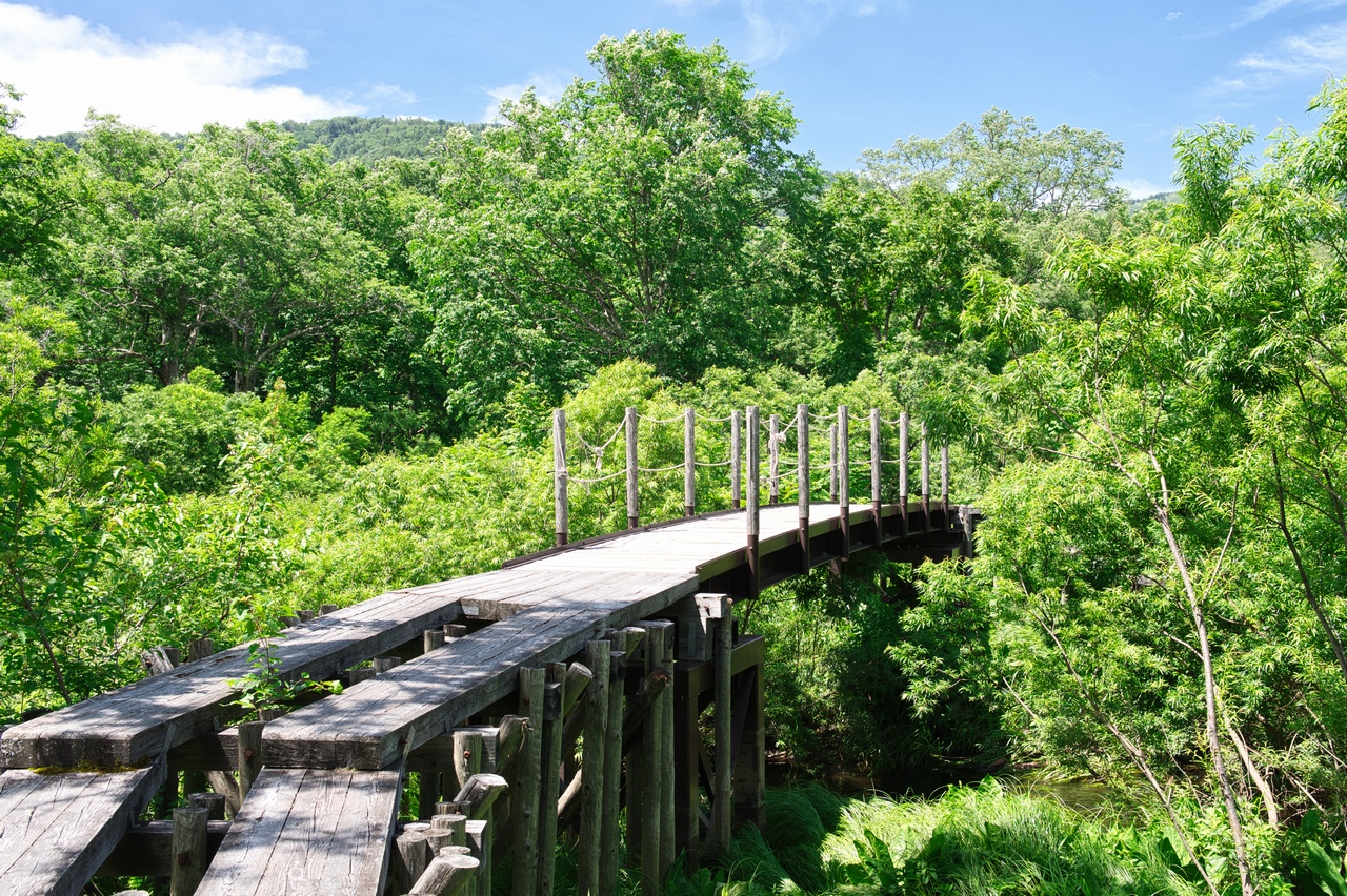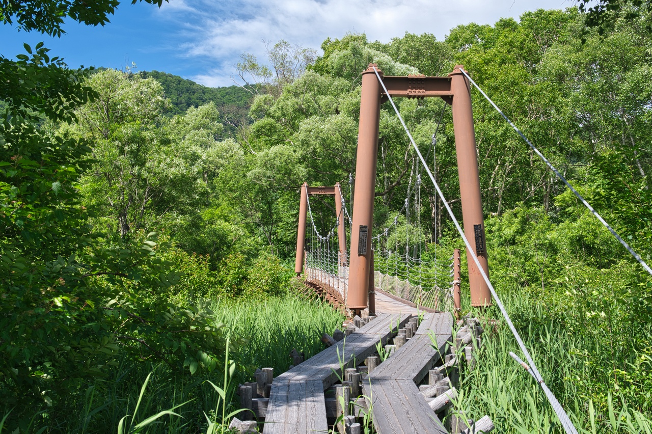 吊橋の下を流れているのは、その名もヨッピ川です。不思議な響きのする名称ですが、川の合流、分岐地点を表すアイヌ語に由来しています。