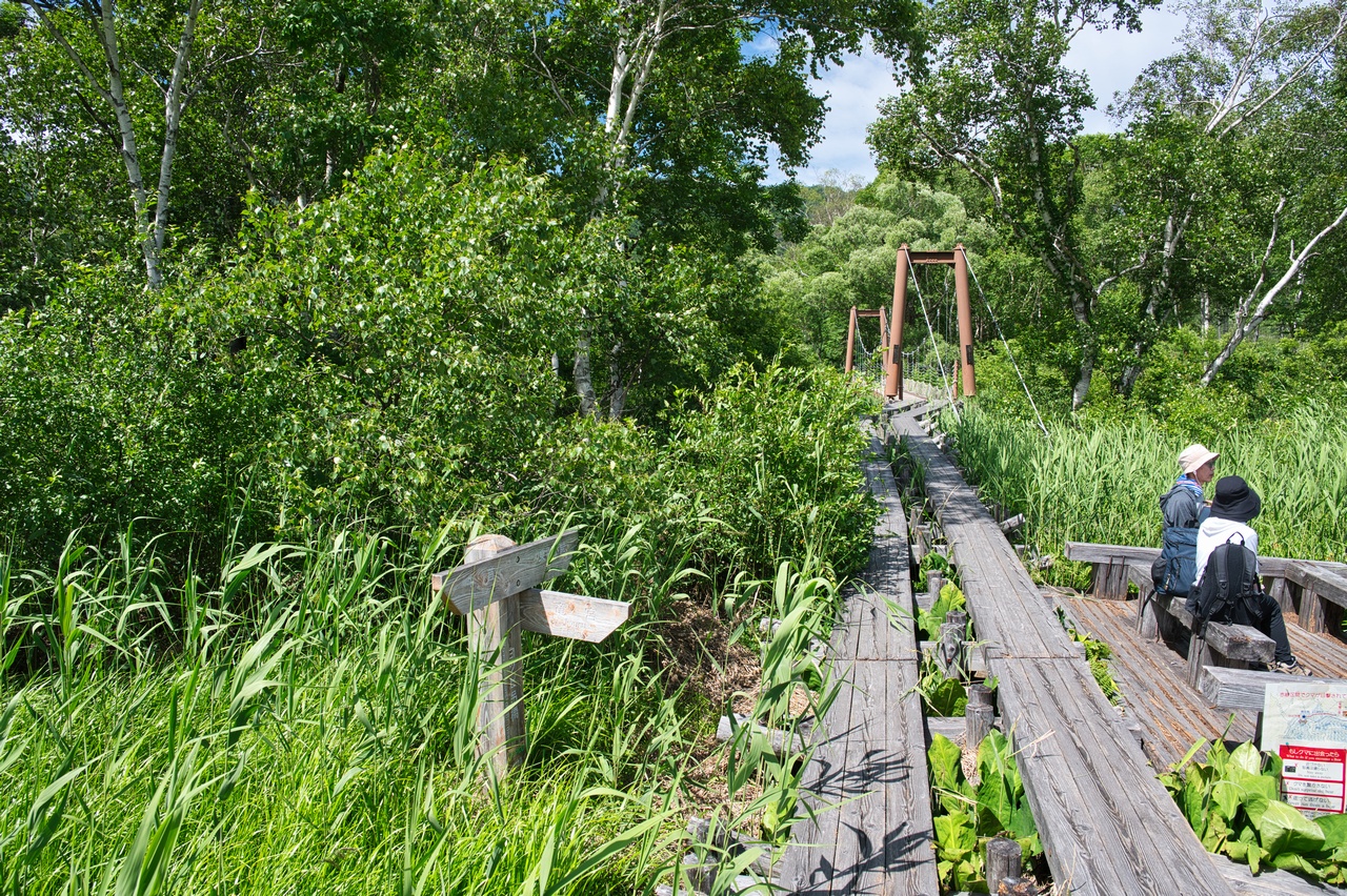 上から読んでも下から読んでも同じ川上川を渡ると、尾瀬ヶ原湿原もすぐ目の前です。なんだかんだで、鳩待峠からは200メートル近く標高を落とします。
