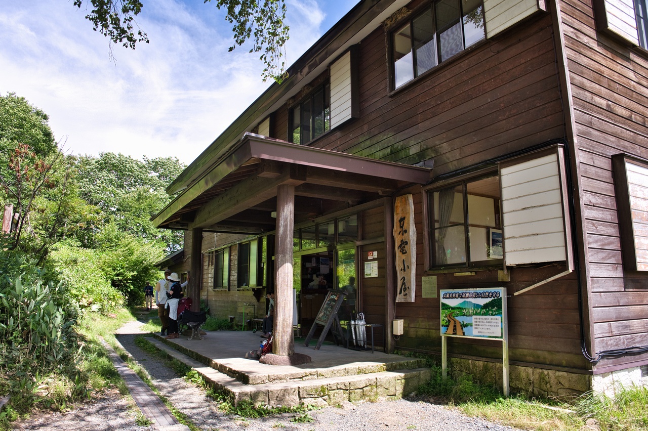 前方に建物が見えてきました。東電小屋と呼ばれている山小屋です。その名の通り東電の子会社が運営しており、もともとは水利調査のために尾瀬を訪れた職員が寝泊まりするための宿舎を前身としています。
