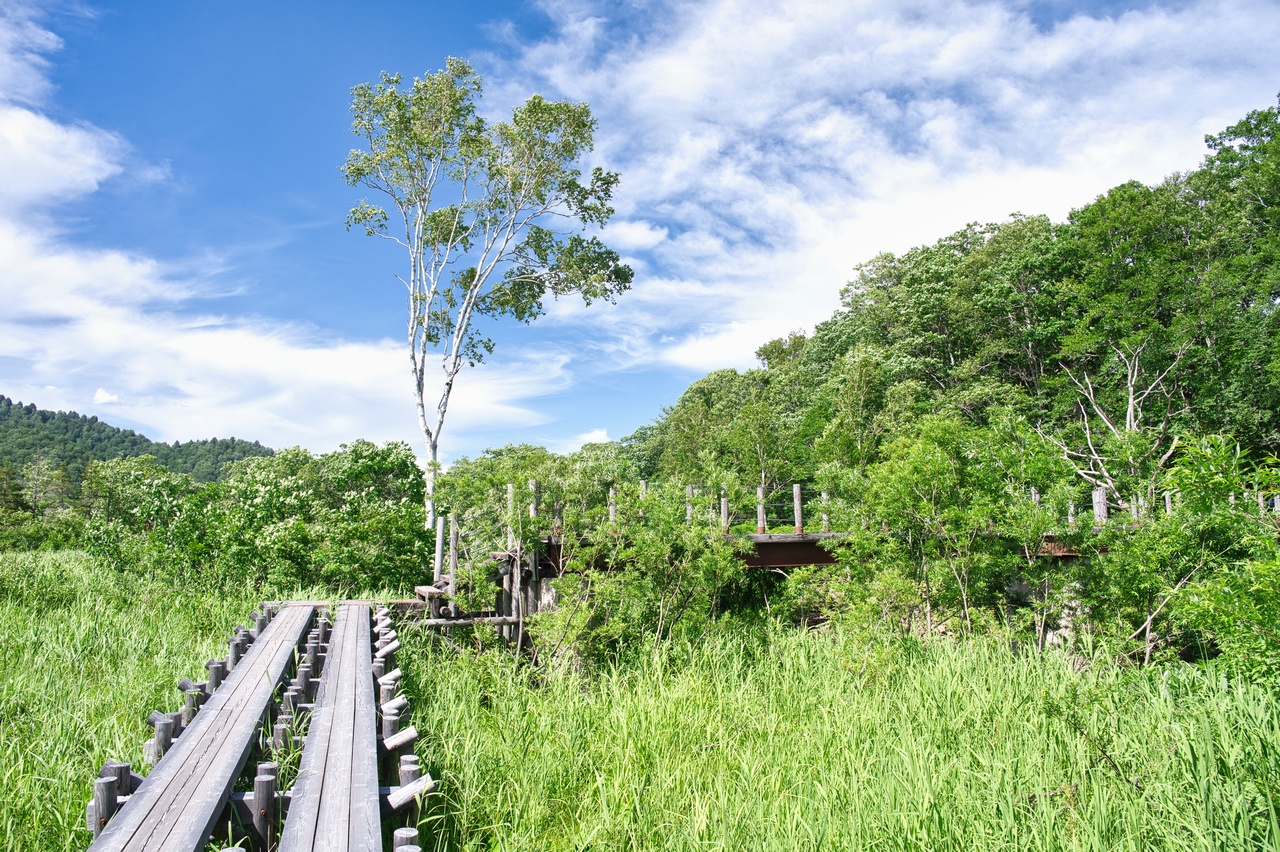 ヨッピ川を渡った北側に広がっているこちらの湿原は、ヨシッ堀田代と呼ばれています。これまた変わった響きの名称ですが、由来は至極単純で、イネ科の植物であるヨシがたくさん生えている場所だからです。