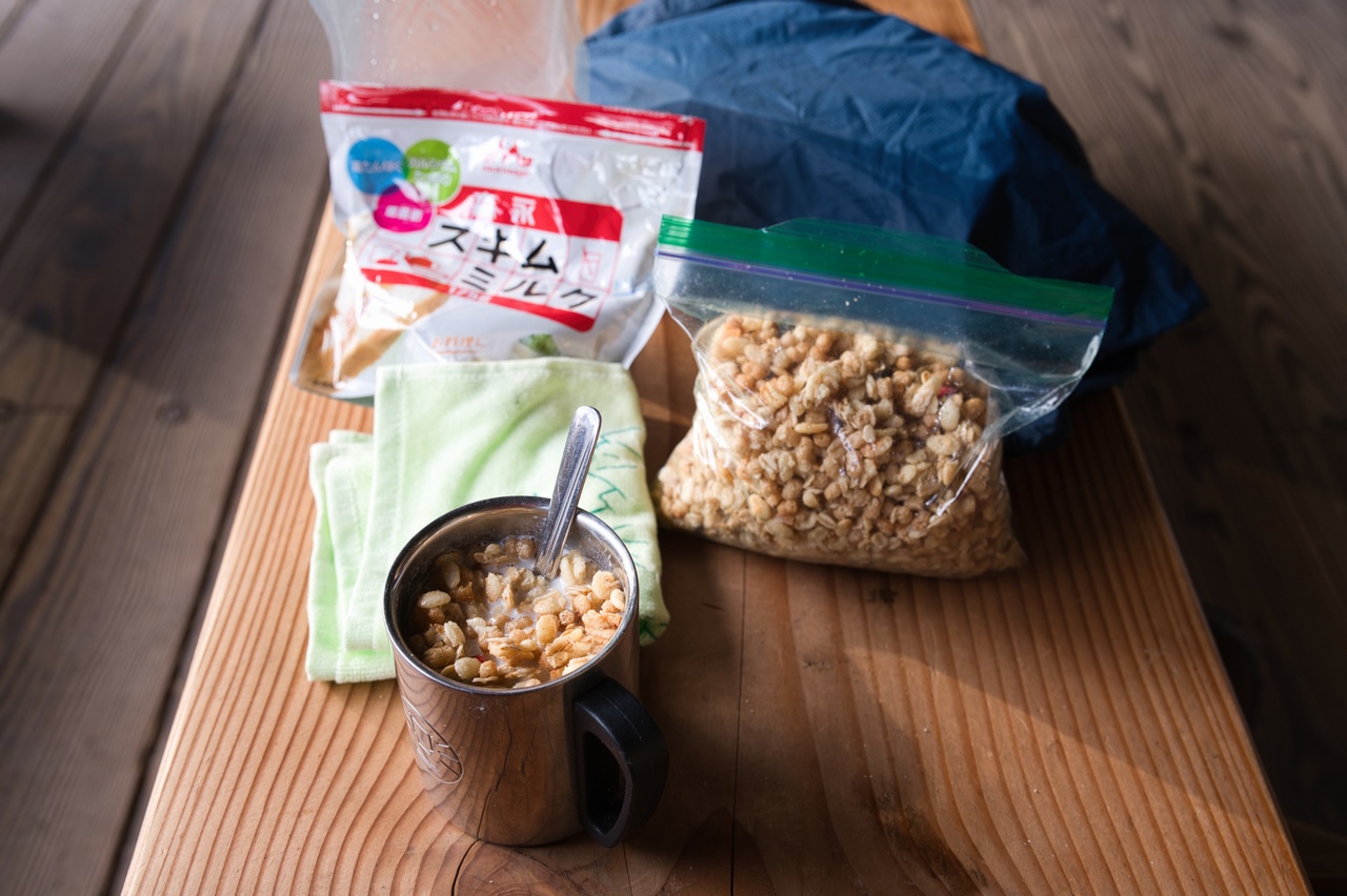 いつものお湯すらも沸かさない食事を手早く済ませます。毎回同じでは味気ないと言えば味気ないのですが、持ち運びが圧倒的に楽なのでついついこれで済ませてしまいがちです。