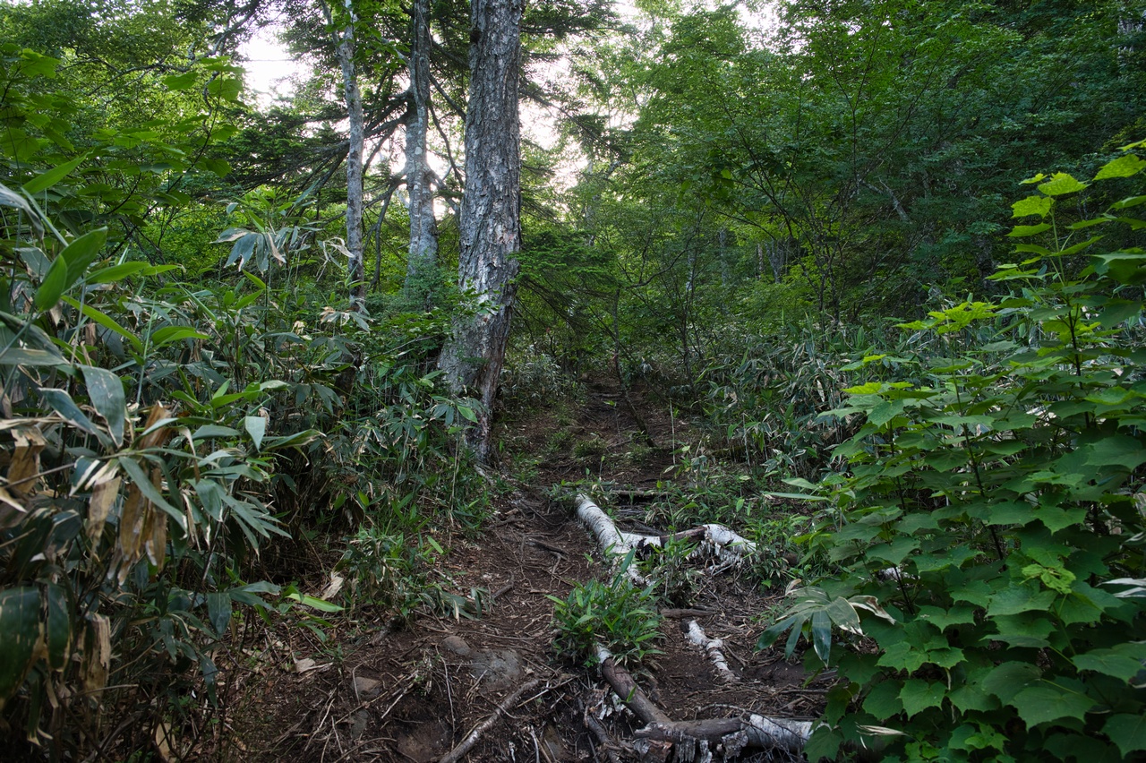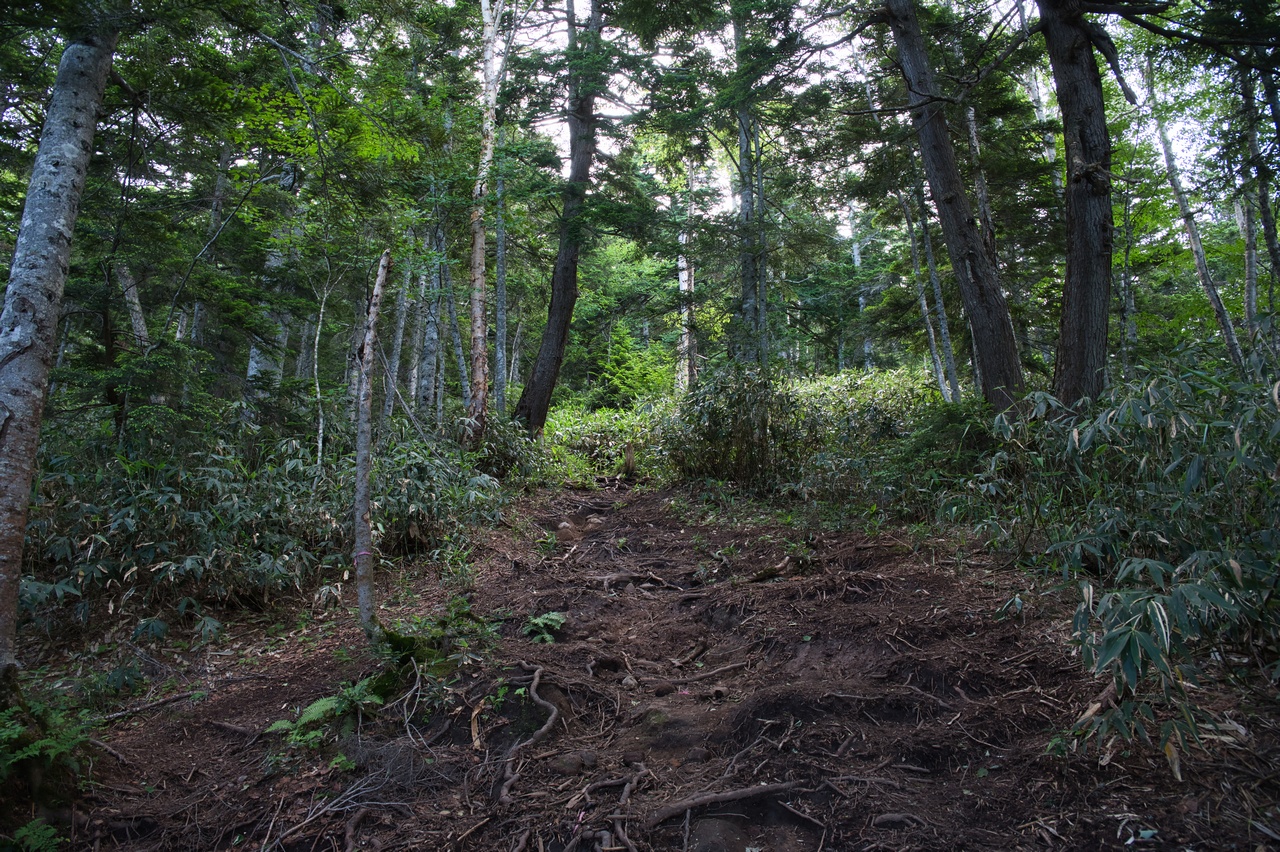 見晴新道の本当の辛さは、泥濘よりもこの単調さであるかもしれません。森林限界高度を超えるまでは、淡々としたアルバイトがひたすら続きます。オラッ、気合を入れろ。しっかり稼げー!