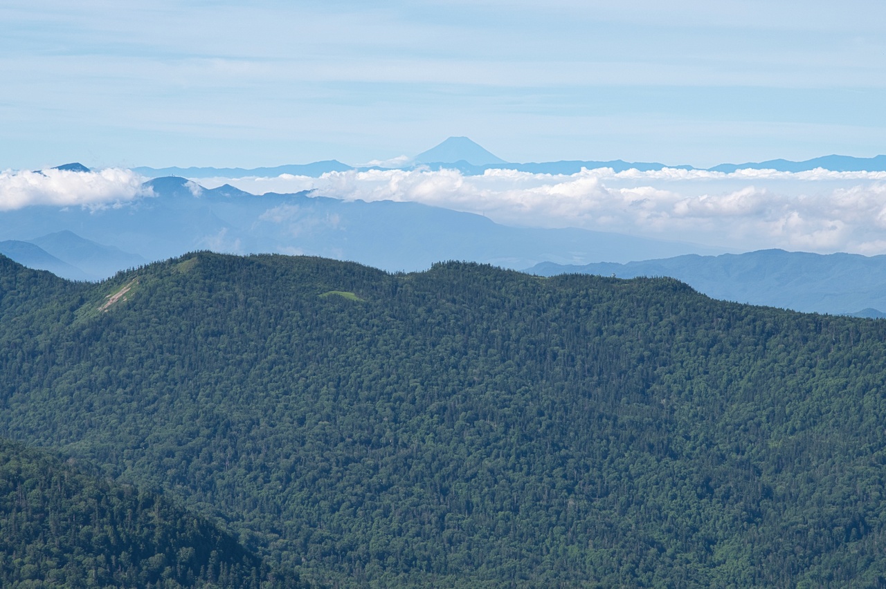 遠く彼方にひょこりと富士山が頭をのぞかせています。そもそも尾瀬から富士山が見えるという事実を初めて知りました。東北地方の山からでも見えるとは、さすがは日本一の山です。