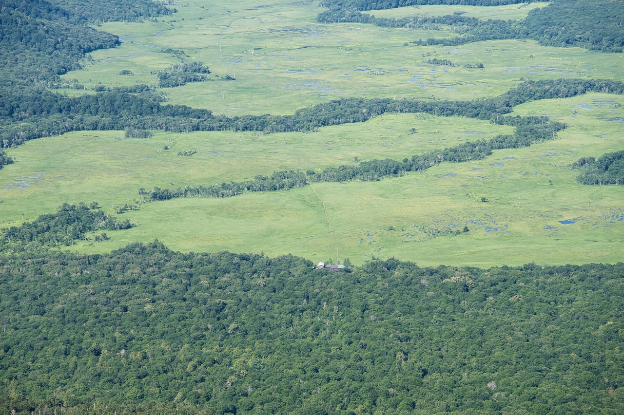 森林限界を超えたことにより、周囲の展望が開けました。眼下には尾瀬ヶ原湿原の全容を見下ろすことができます。燧ヶ岳が尾瀬のシンボルとされる所以です。