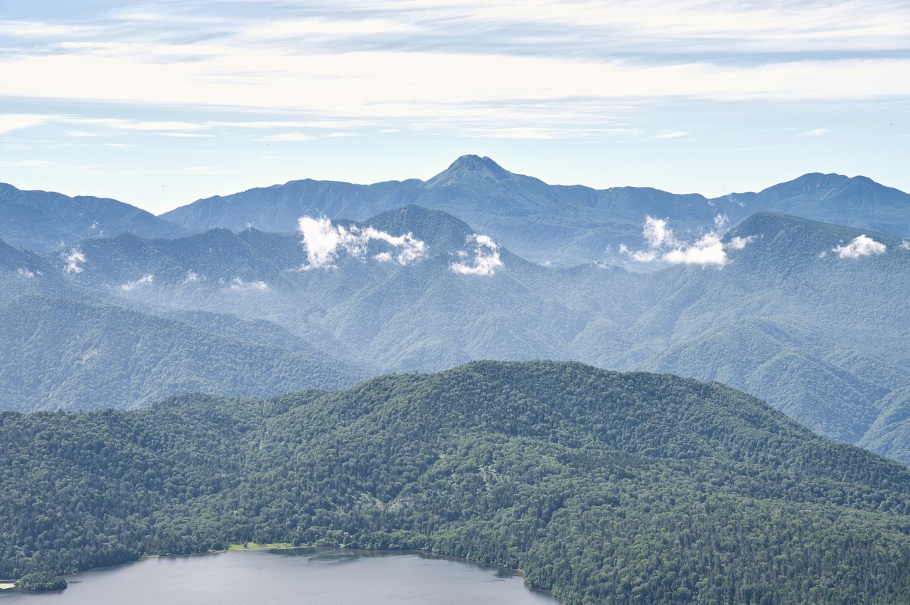 燧ヶ岳は複数のピークからなる、複雑な形状をした成層火山です。遠目からは双耳峰のように見えますが、実際には5つのピークが存在し、最高峰の名前を柴安嵓(しばやすぐら)と言います。
