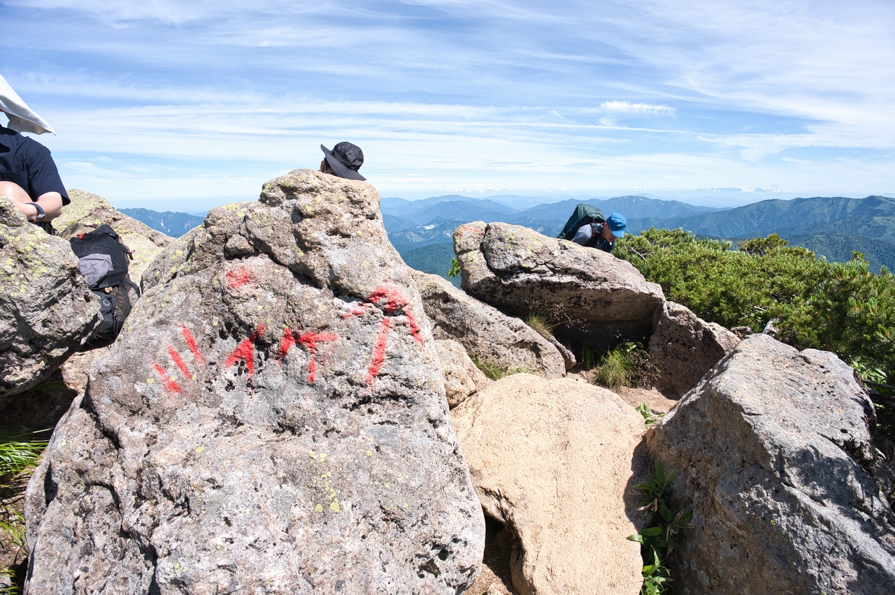 幸いにも俎嵓への登り返しはそこまで急勾配ではありません。しかしそうは言っても、ギラギラの直射日光にさらされ続けているので、とても暑い。