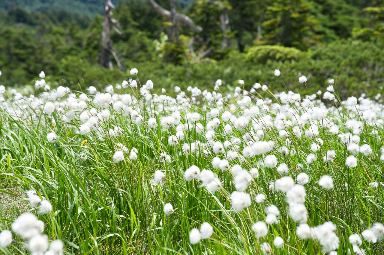 昨日尾瀬ヶ原でほぼ終わりかけのワタスゲを見たときは、時期的に遅すぎたのかと絶望しかけていたのですが、御池ルートのワタスゲは今まさに見頃のど真ん中でした。