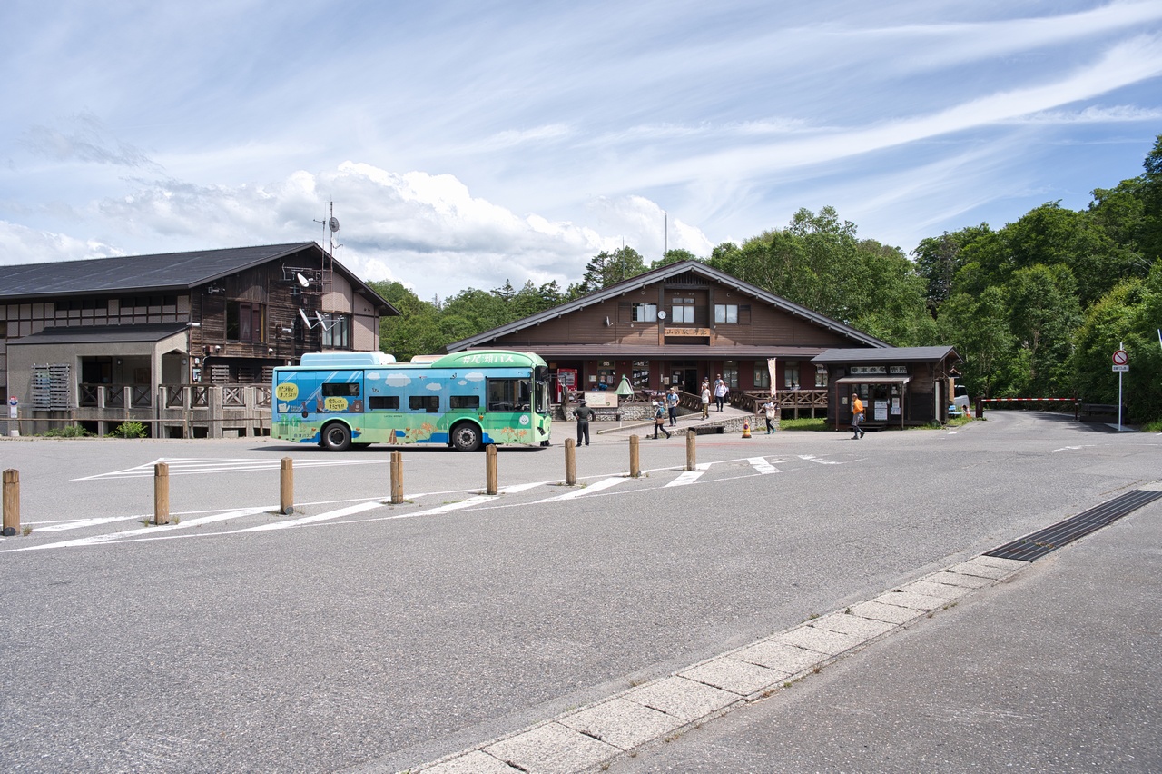 シャトルバスの発着場は、鳩待峠からは少し下がった位置にあります。と言うことで峠に向かって舗装道路を少しだけ登ります。