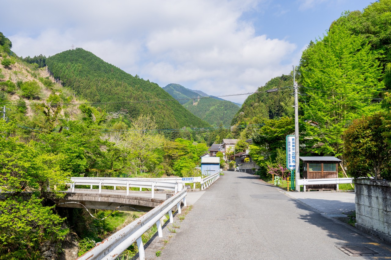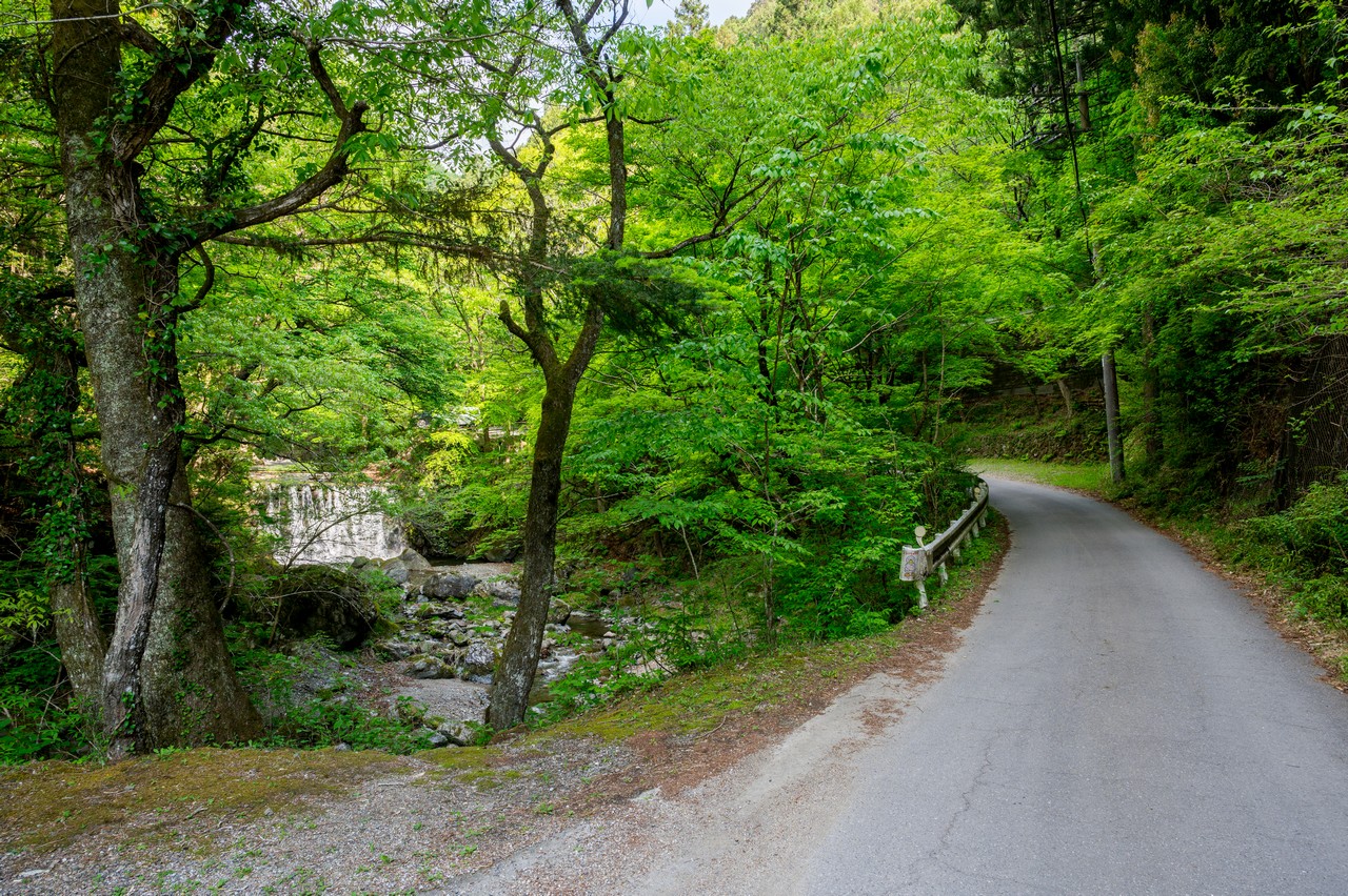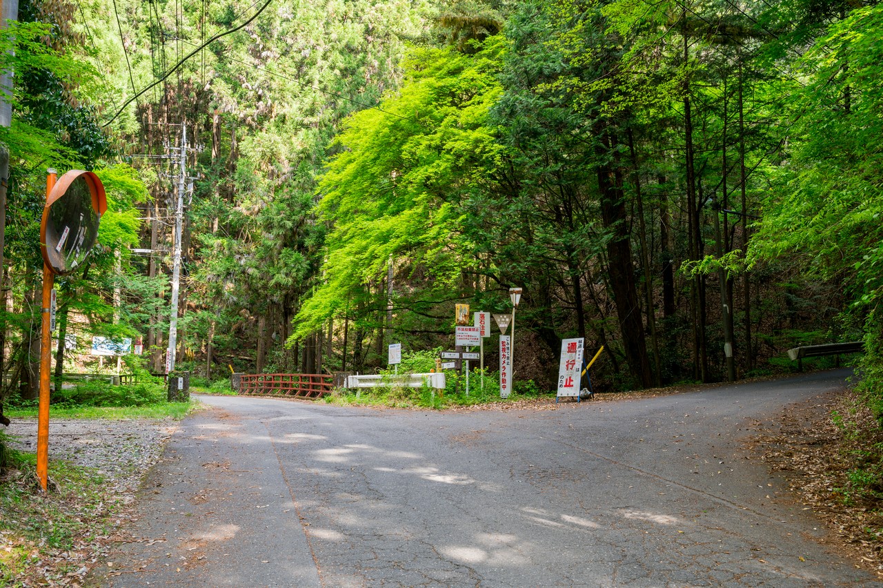 入間川の源流に沿って道が続いています。川沿いにキャンプ場が整備されており、車の往来は結構頻繁にあります。
