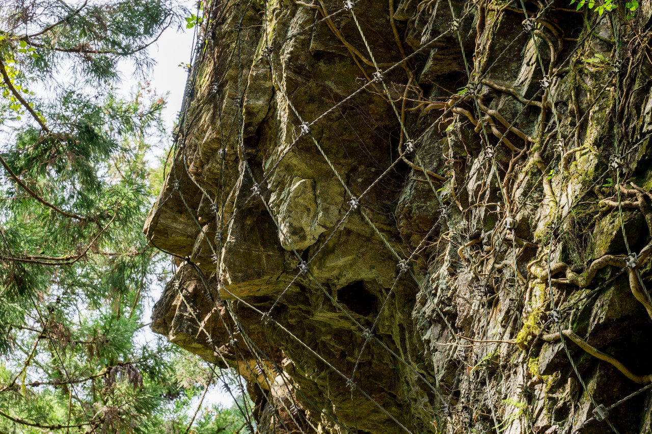 落石防護ネットで雁字搦めにされてはいますが、長居はしない方が良さそうです。足早に通り抜けましょう。