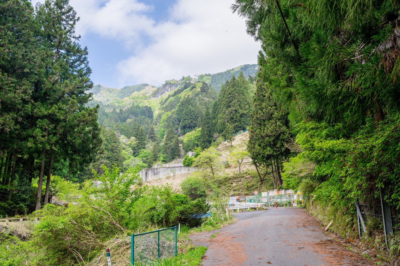 バス停から40分程歩いたところで、前方の視界が開けました。平成27年まで石灰岩の採掘が行われていた、武蔵白岩鉱山の跡地です。