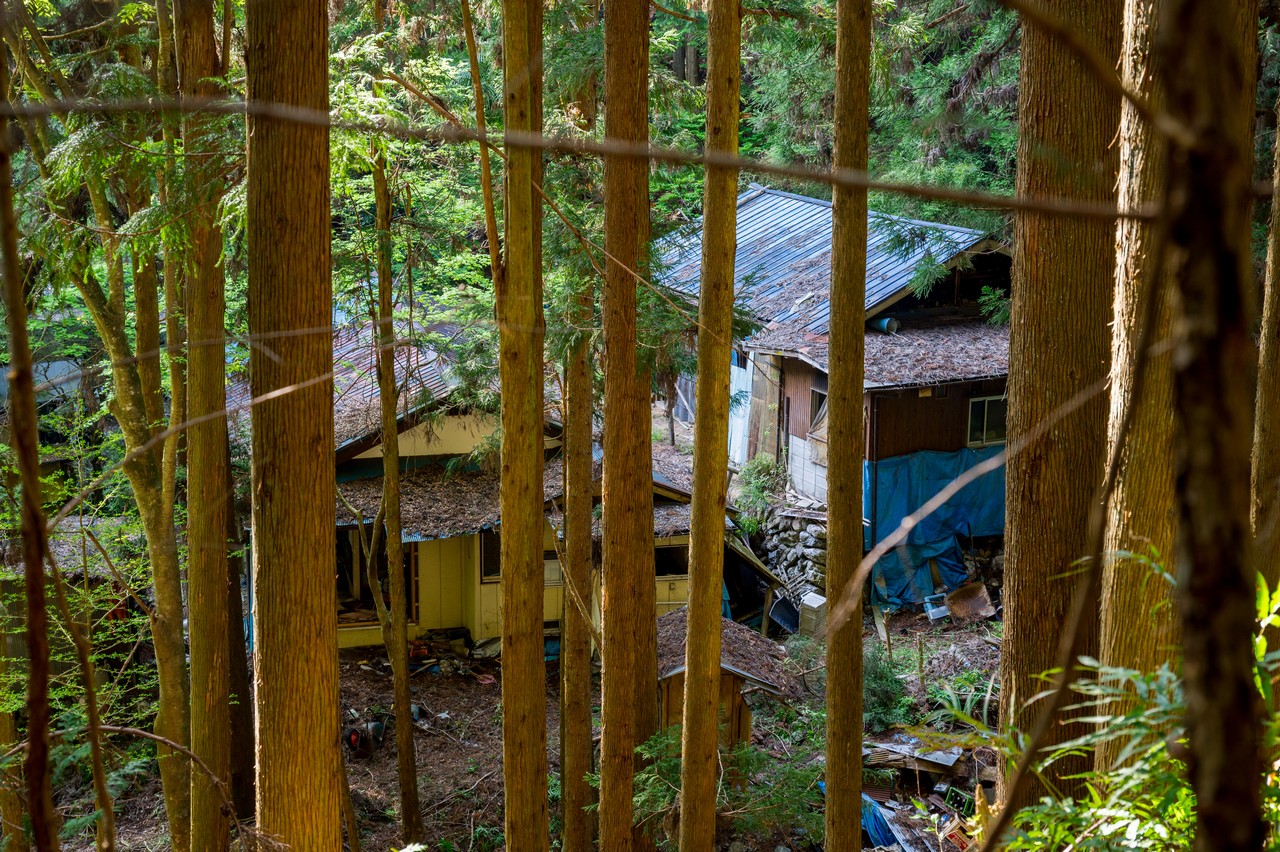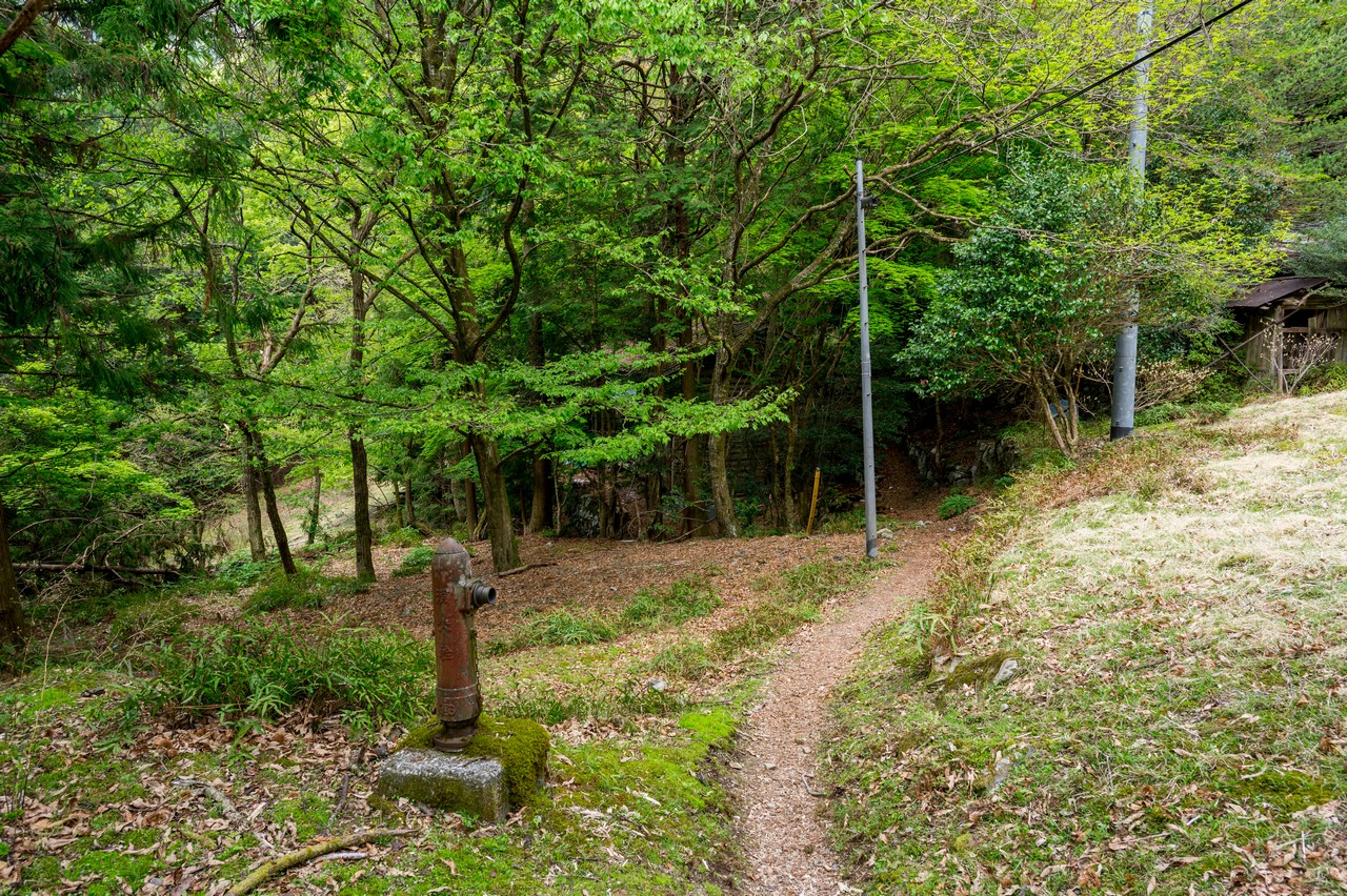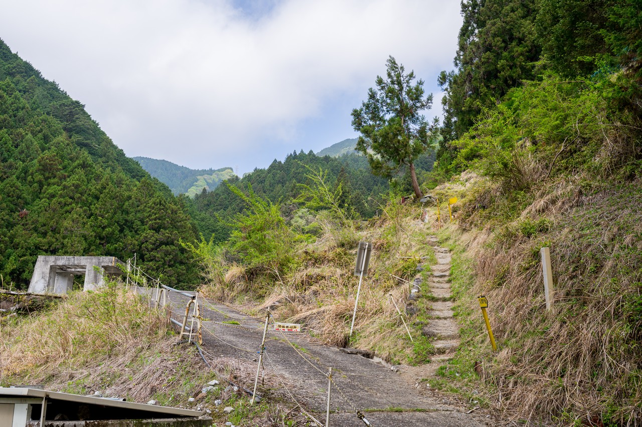登山道沿いの山中に、現在では既に廃墟と化している白岩集落の跡地があります。かつては白岩鉱山の関係者が暮らしていたようですが、鉱山の閉鎖よりも先だつ平成6年頃に無人化しています。