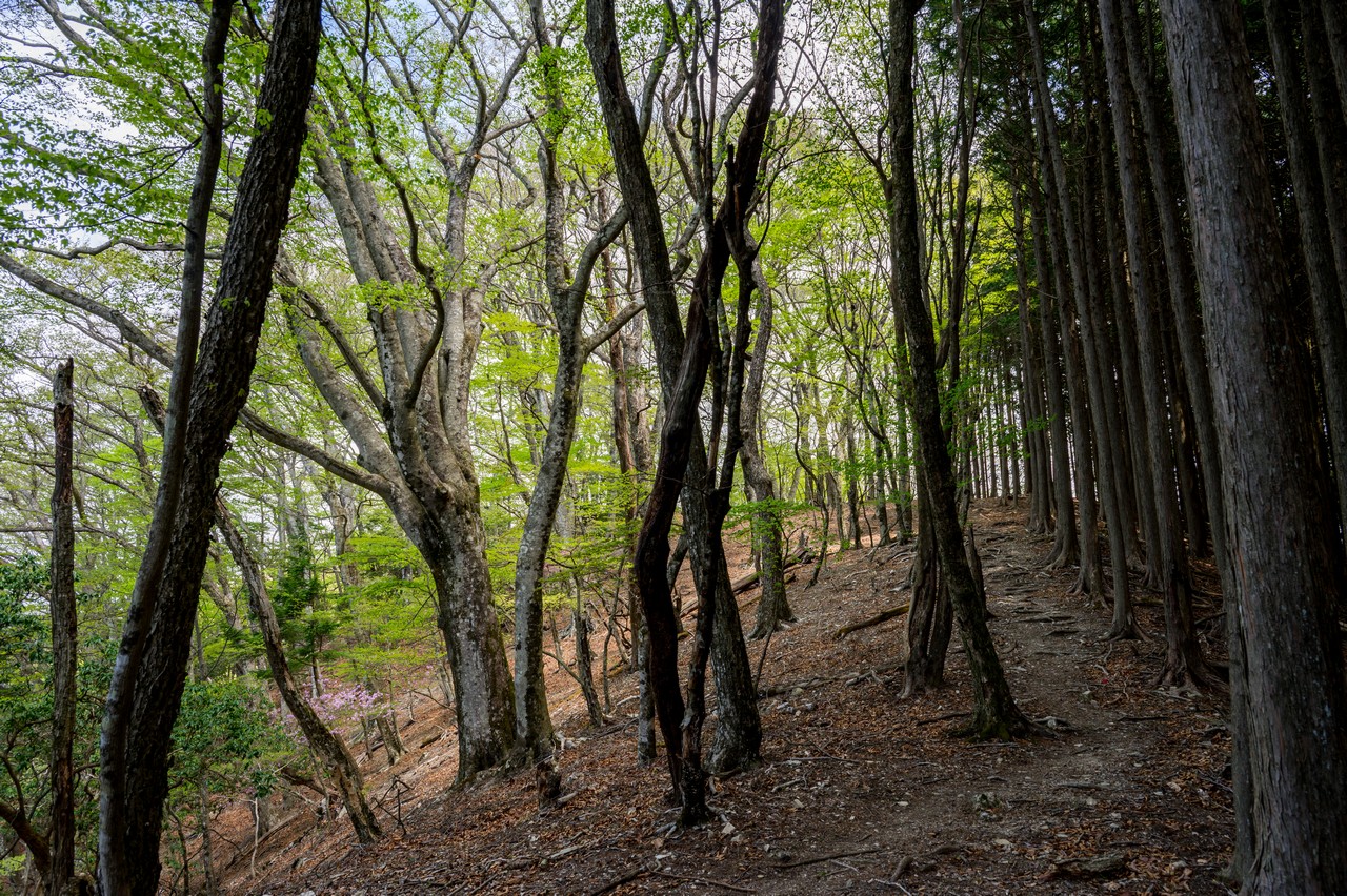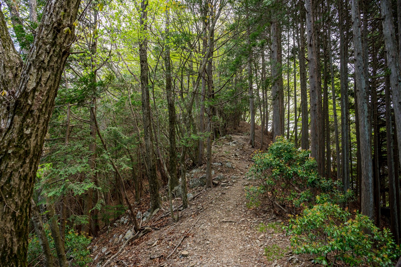 集落跡を過ぎると、登山道は稜線に向かって大真面目に標高を上げ始めました。なかなかの急登です。それはいっちょう、気合を入れていきましょう。