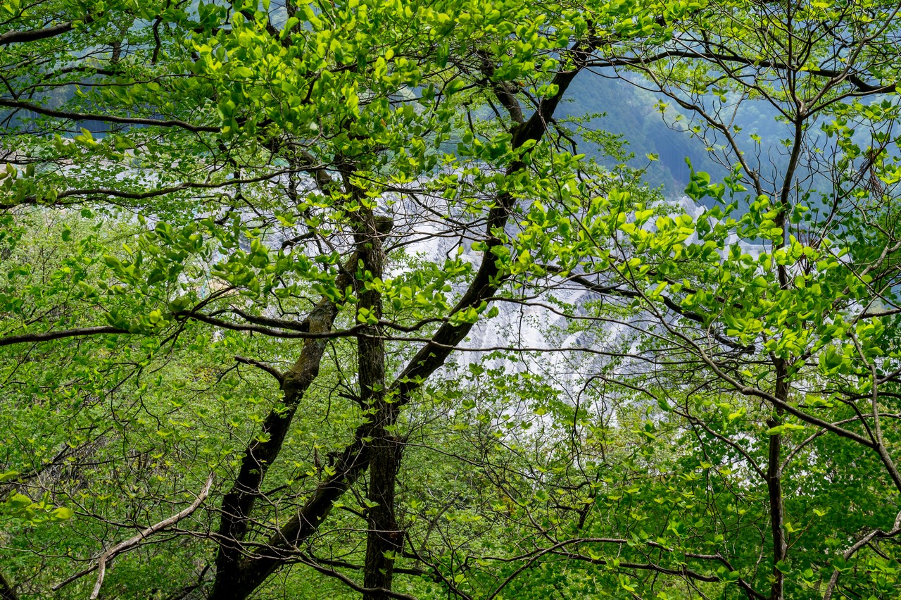 樹木の隙間から、白岩鉱山の採掘面が見えています。この状態からあと何年ぐらい放置すると森に戻るものなんでしょうか。
