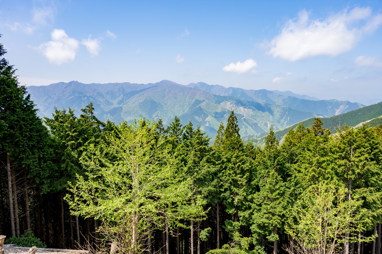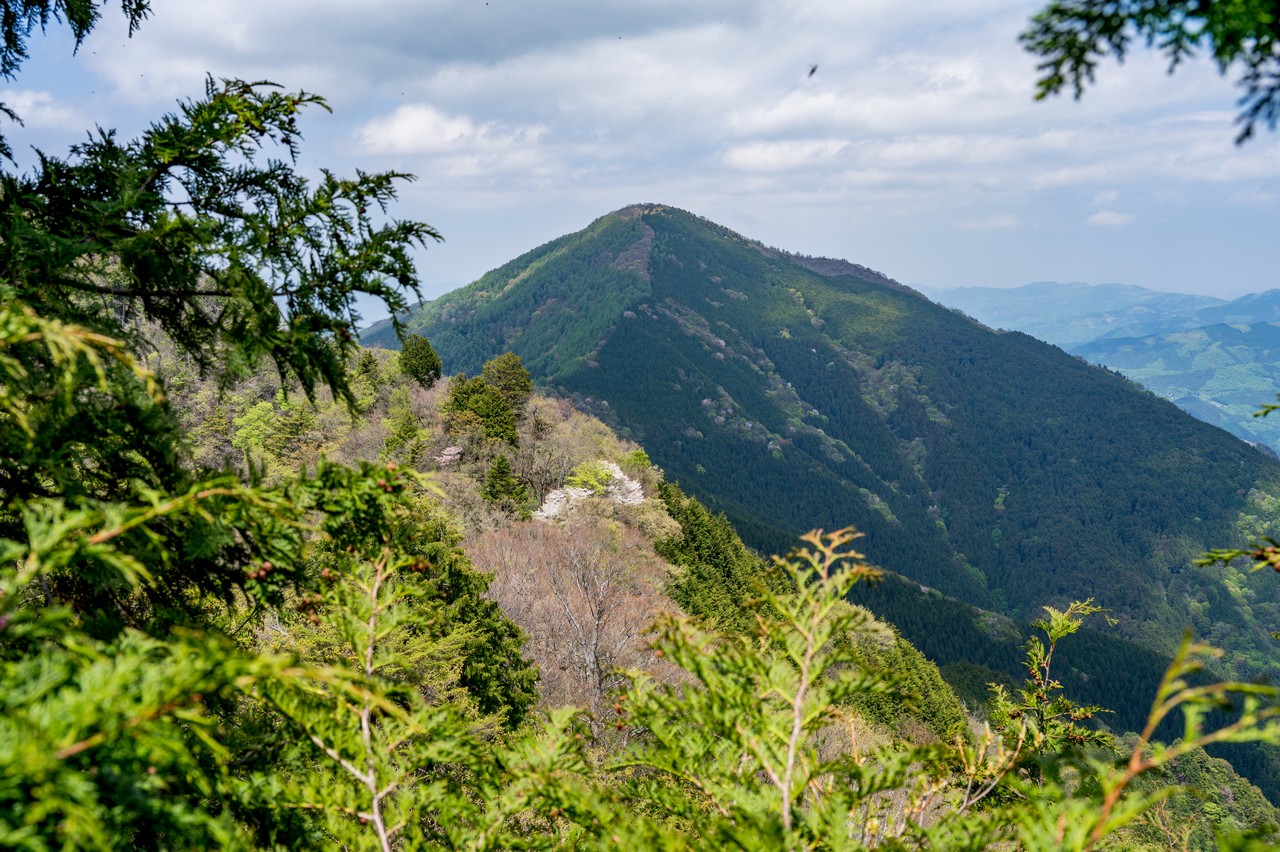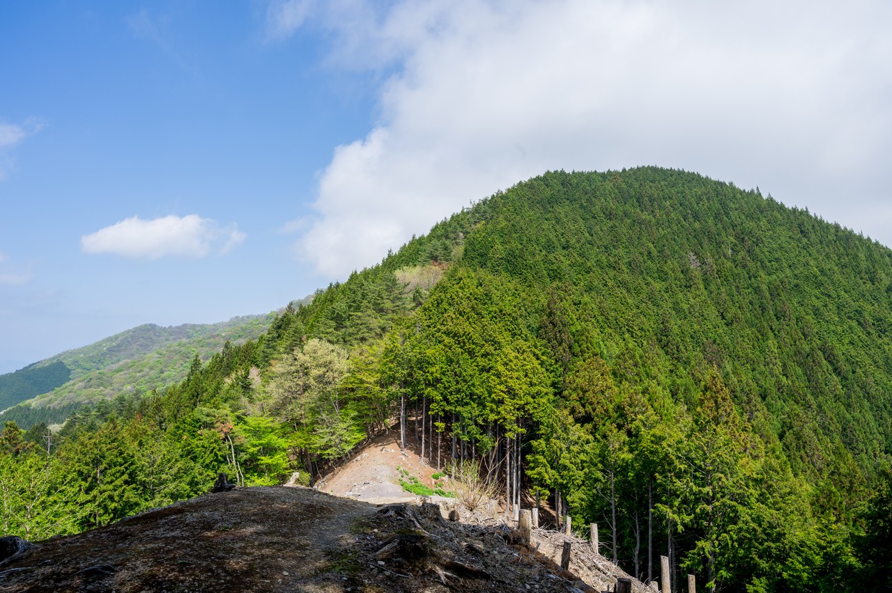 正面に見えている緑々とした山は目指す大持山ではなく、その手前にある天神山と言う名前のピークです。大持山は背後に隠れてしまっているため、ここからでは見えません。