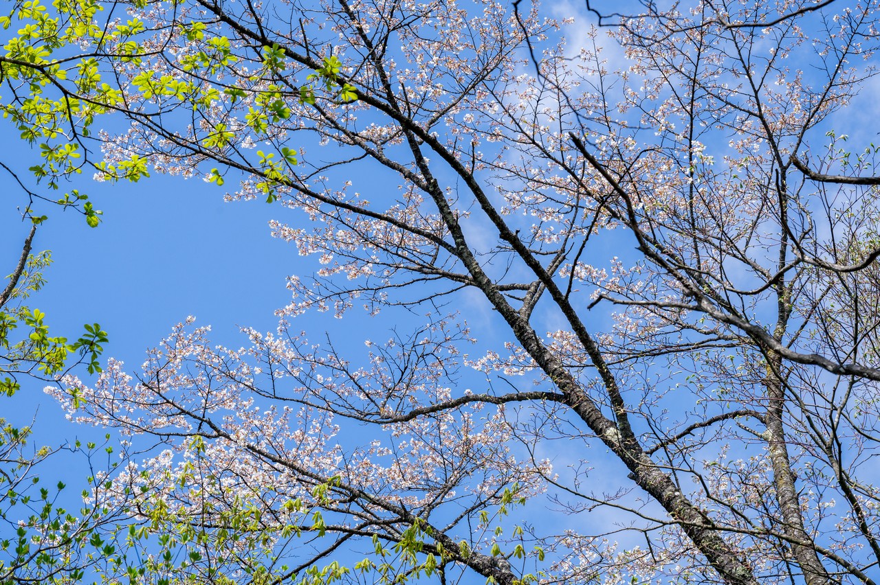 頭上には山桜が咲いています。もう既に終わりかけらしく、登山道上にヒラヒラと桜吹雪が舞い降りてきていました。うーん、春ですねえ。