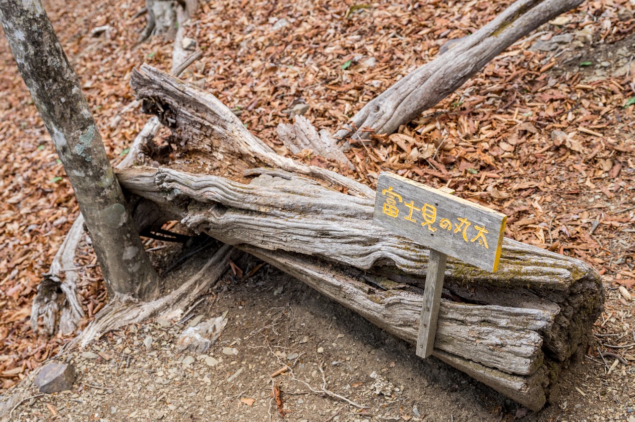 この最後の登りの途中に、富士見の丸太と称した、だいぶ朽ち掛けている倒木がありました。
