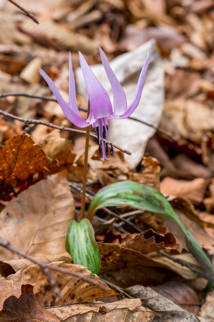 富士山が見えない代わりだとでも言わんばかりに、ポツポツとカタクリが咲いていました。時期的にはもうほぼ終わりかけで、咲いている花は僅か数輪しか残っていませんでした。