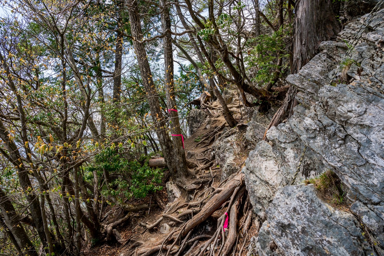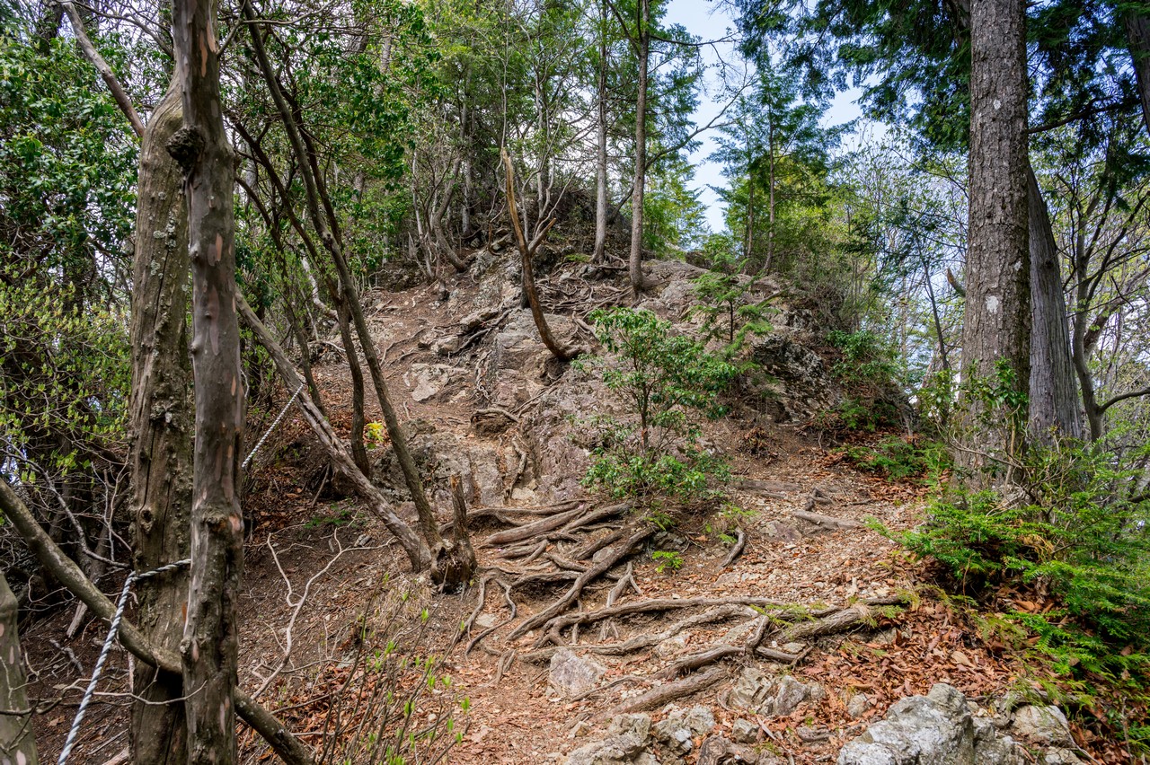 険しさが増して、手も使わないと登れない道になって来ました。過去に一度歩いたことがあるはずの道なのですが、まったく記憶にありません。こんなに険しい道でしたっけか。