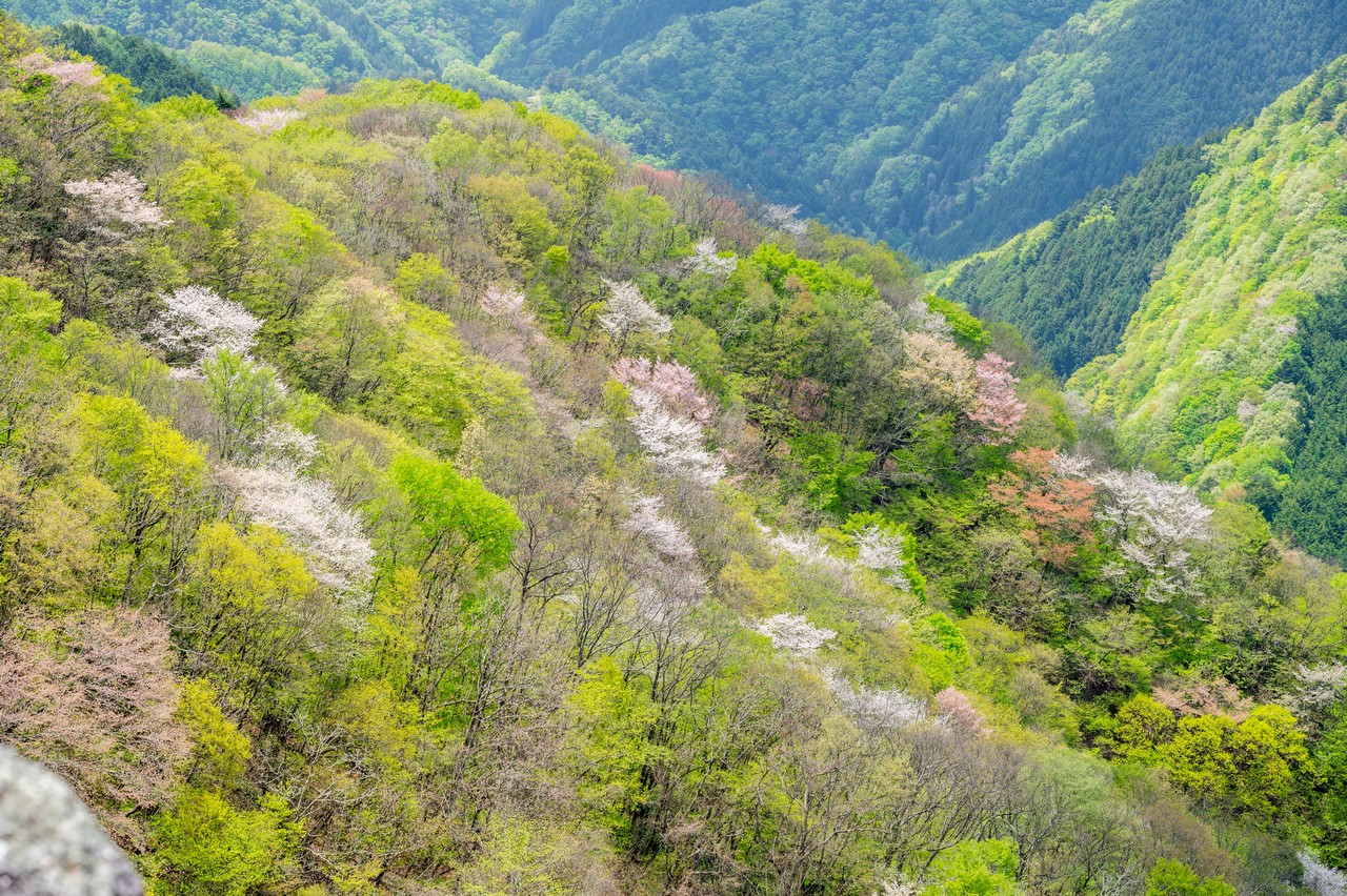 足元を見ると、そこかしこに山桜が咲いていました。これぞまさに春山と言った風情の光景です。