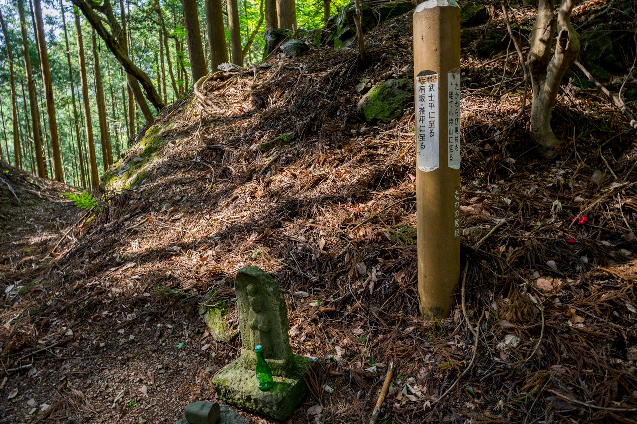 この道はどうやら古くから存在する峠道らしく、ここまで下って来た登山道とは違って明瞭明快です。