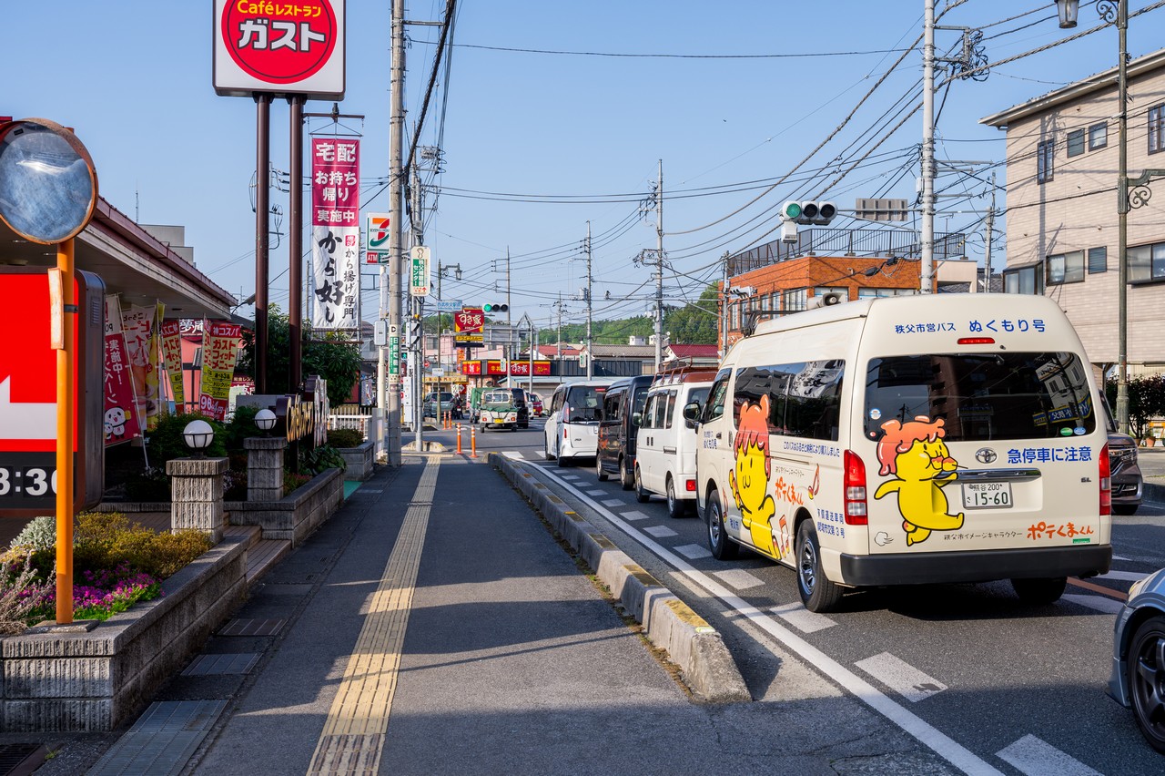 秩父市営バスのバス停留所は、駅前のロータリではなく国道上にあります。駅からは徒歩約1分と言ったところですが、西武秩父駅周辺の地理が頭に入っていない人だと若干戸惑うかもしれません。