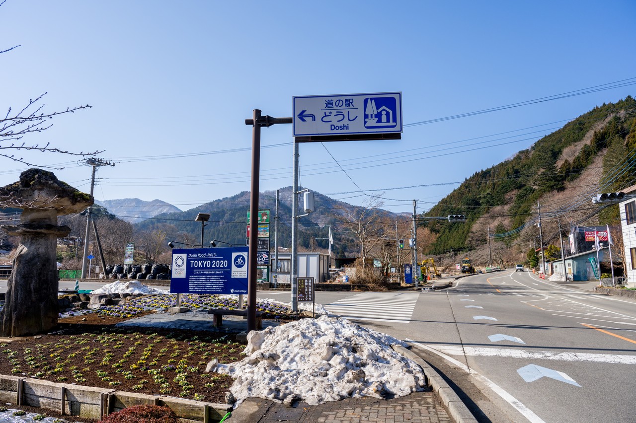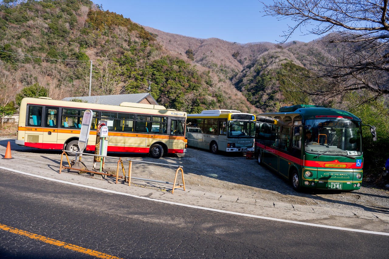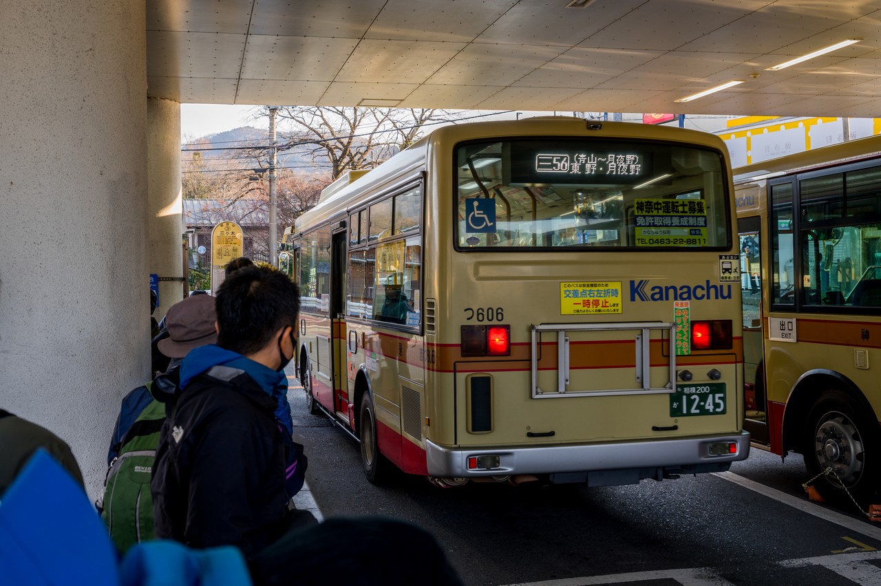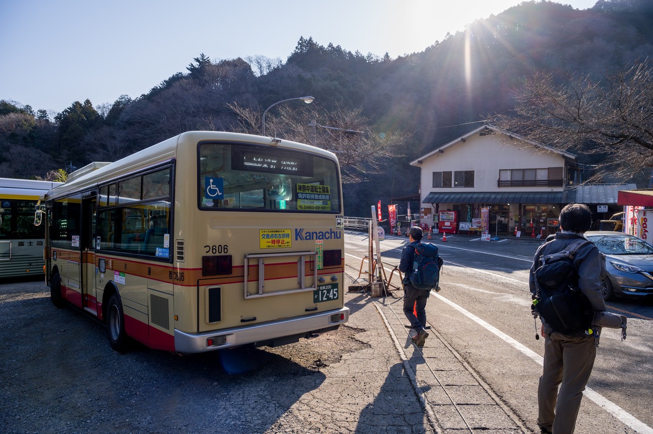 スタート地点となるのは道の駅どうしです。私が訪問した令和7年の3月時点では、平日と土曜日限定で神奈中と富士急の路線バスを乗り継ぐことによって、公共交通機関によるアクセスが可能でした。