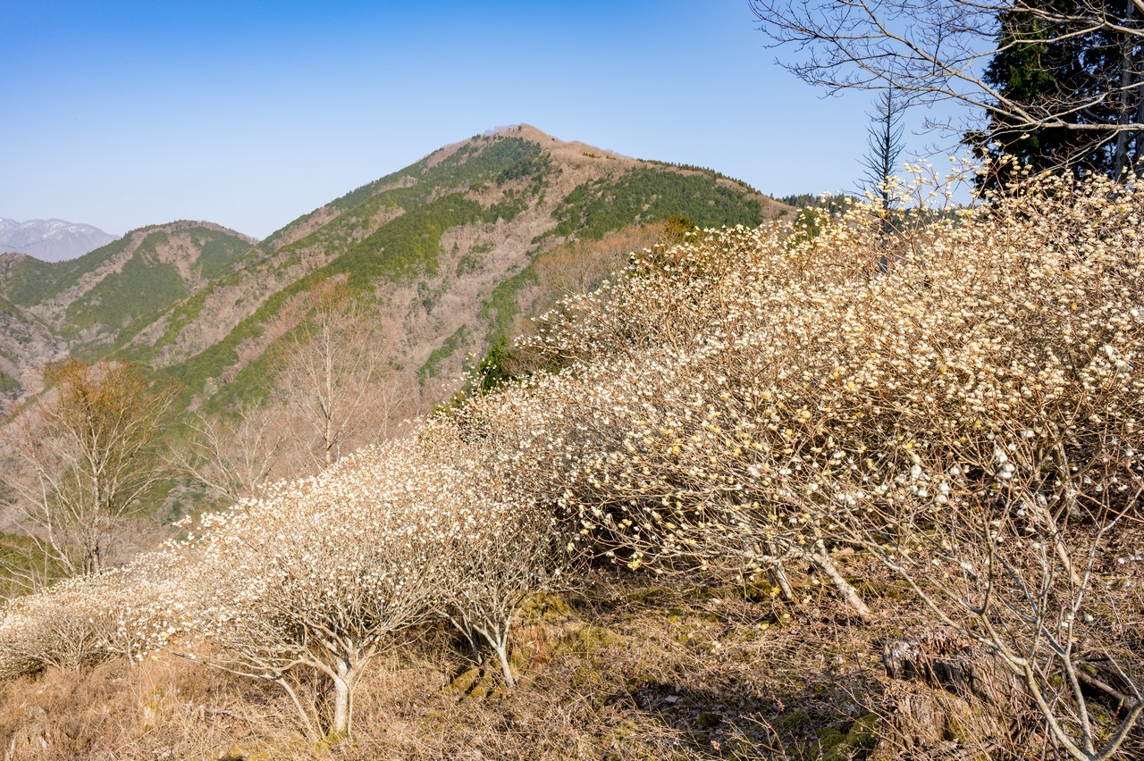 エルドラドと呼ばれている地点まで下って来ました。斜面上に大規模なミツマタの群生地が広がっています。
